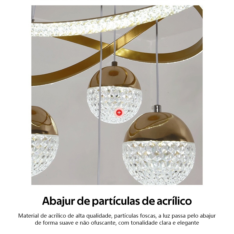 Lustre de Cristal 3 Cores, Lustre para Sala de Jantar e Quarto Moderno de Cristal 110V/220V -O16