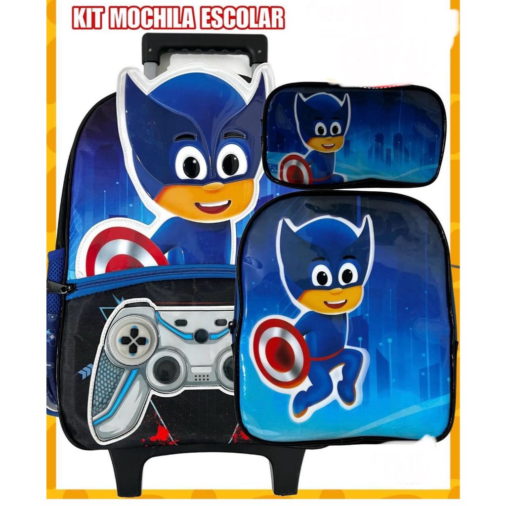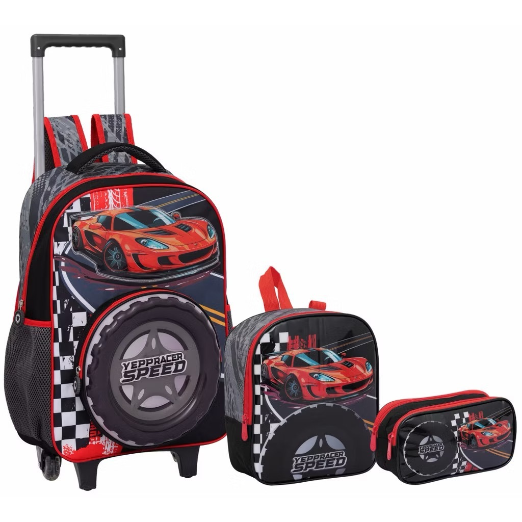 KIT MOCHILA ESCOLAR INFANTIL MASCULINA COM RODA YEPP