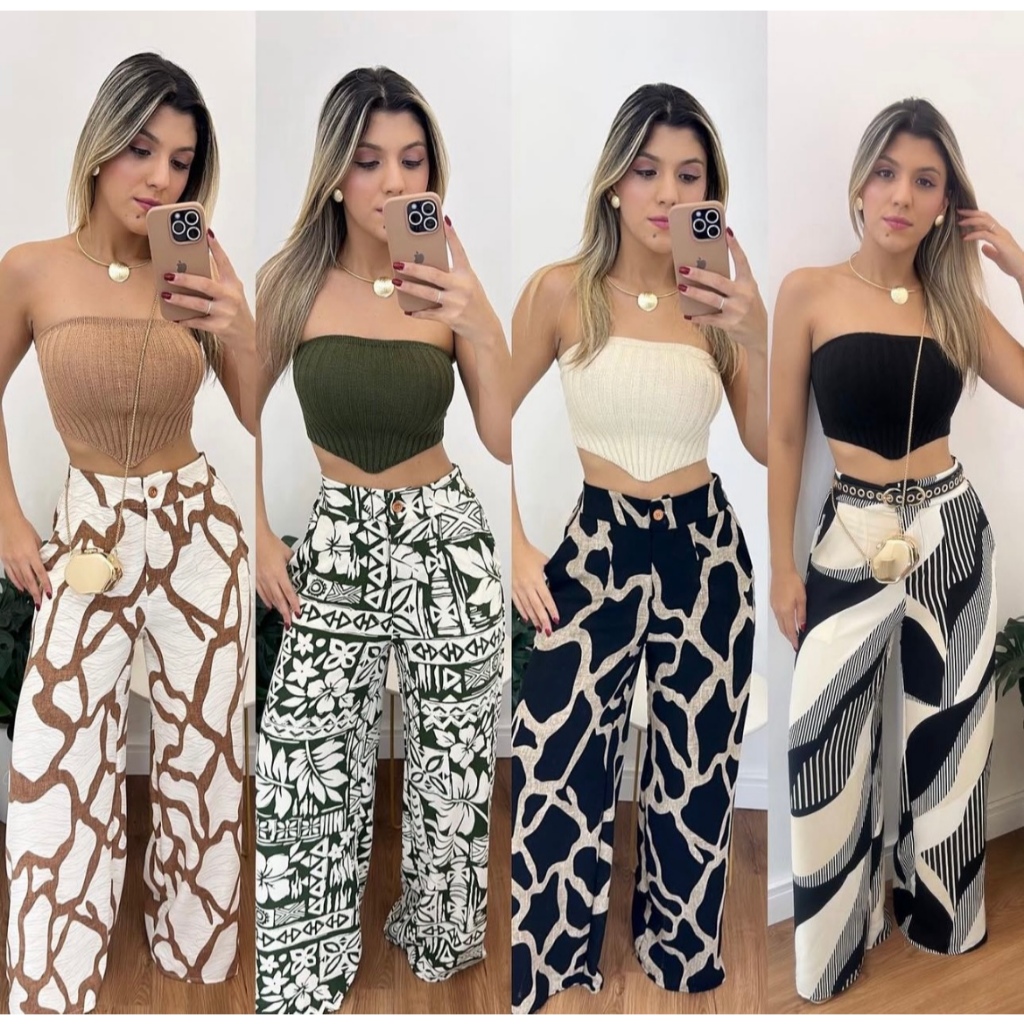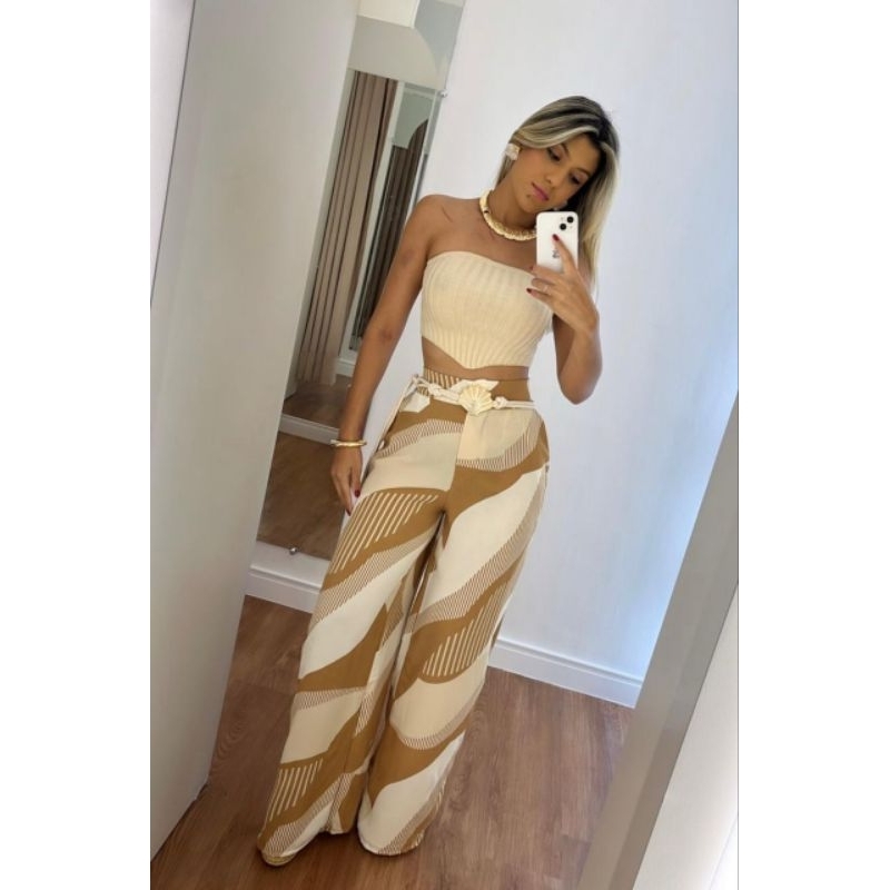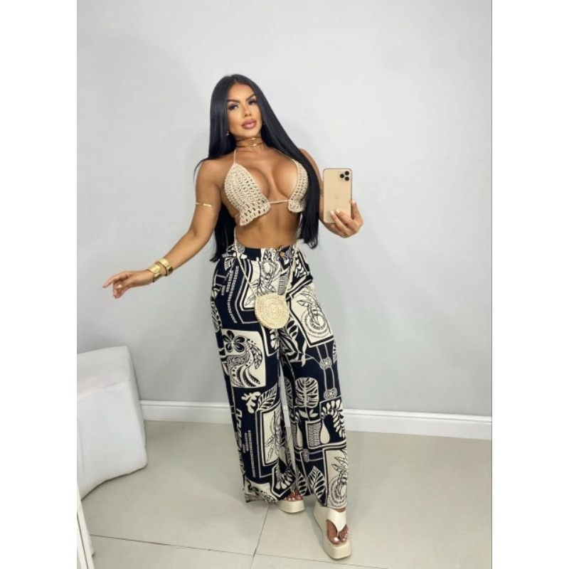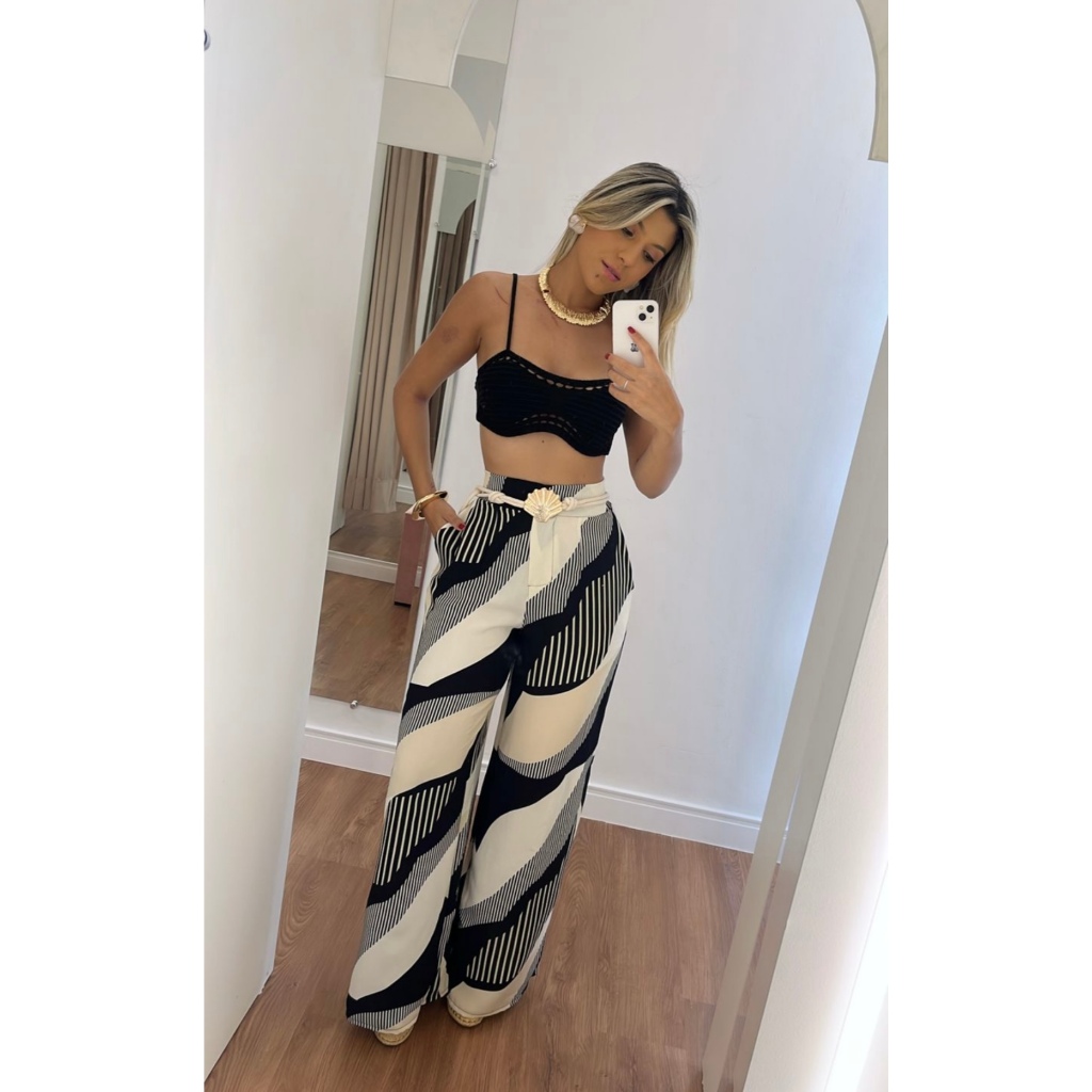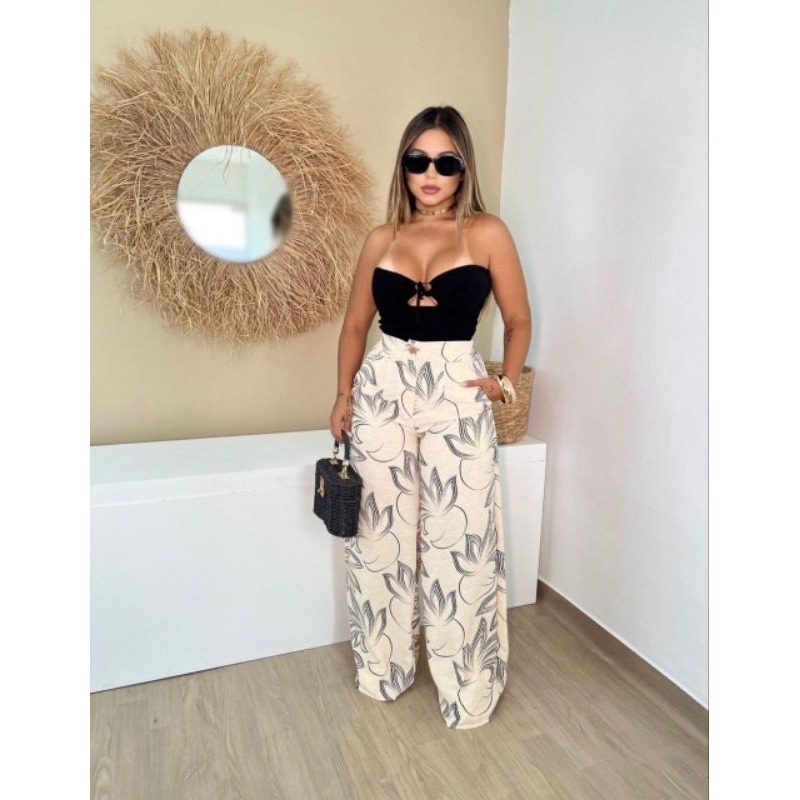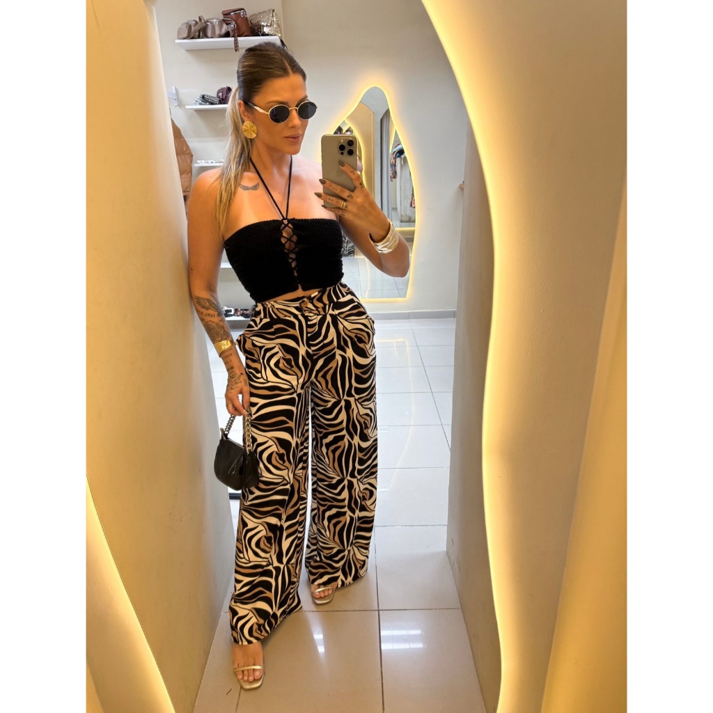 Calca Pantalona Estampada duna com ziper e botao