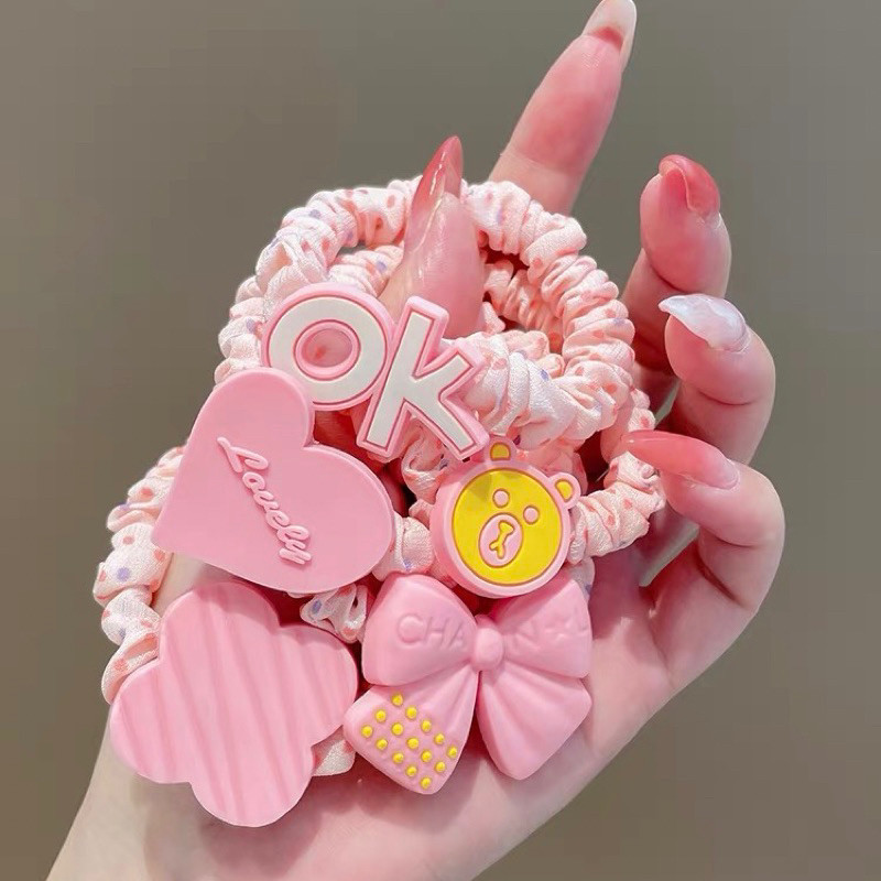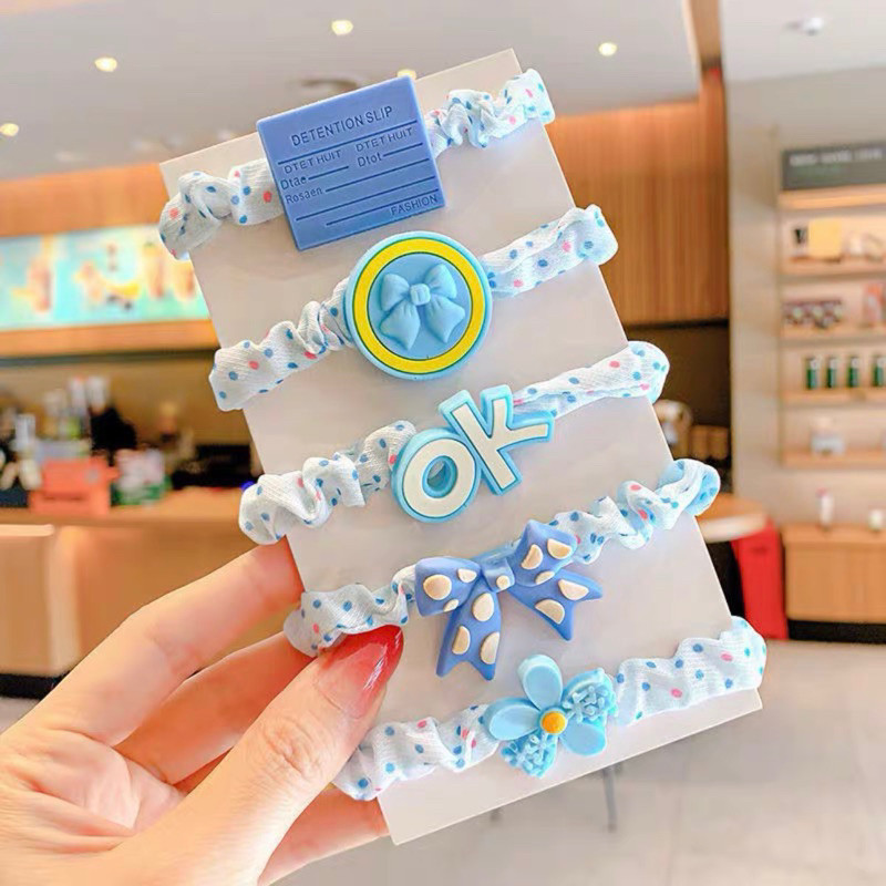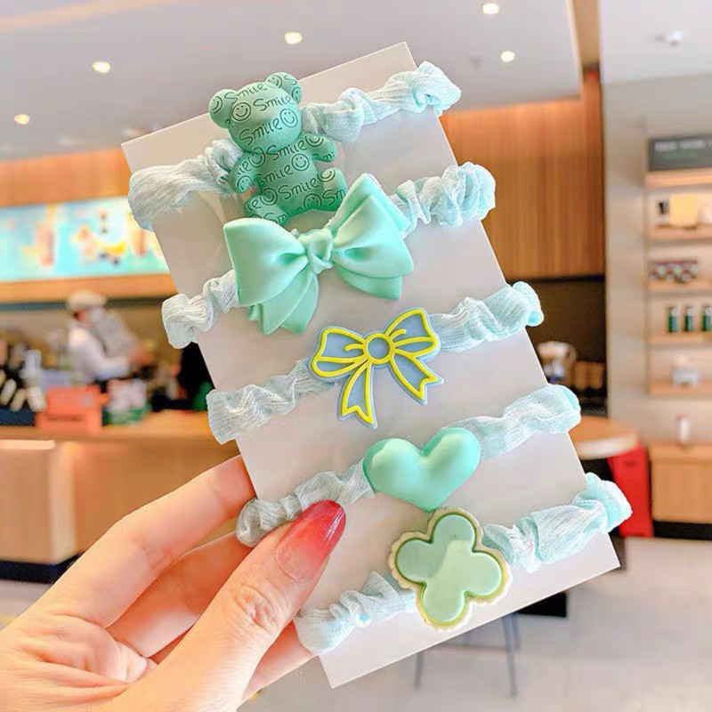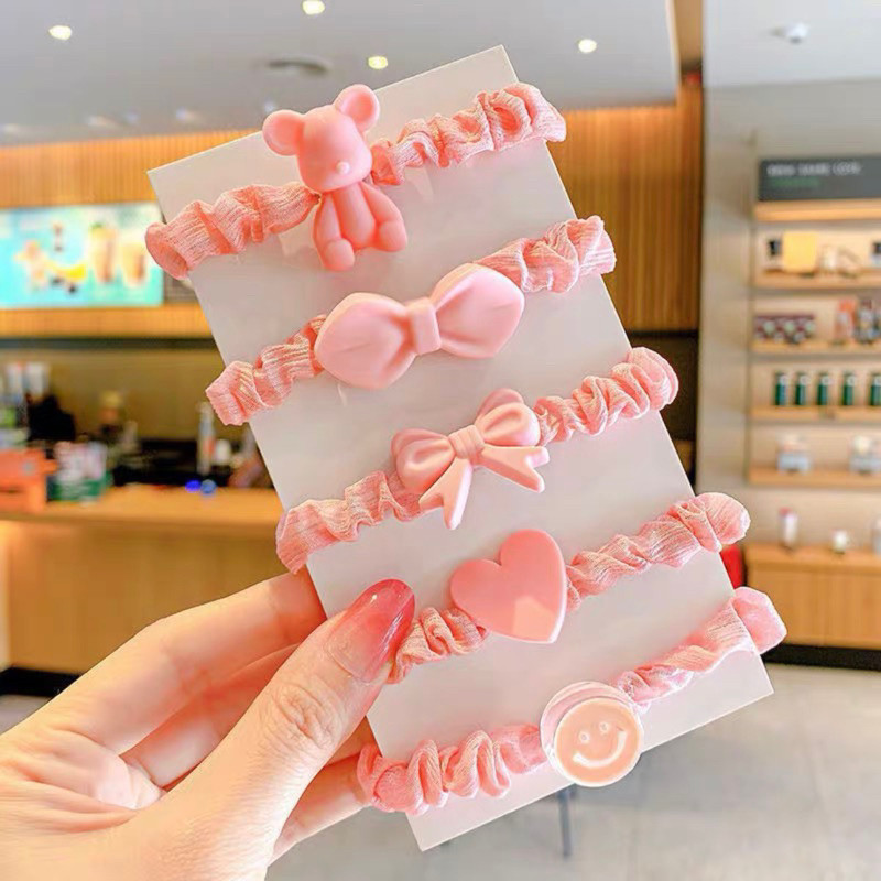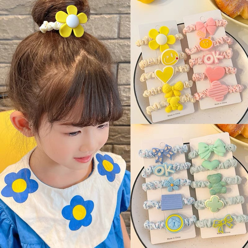 Kit 2x5pçs/Conjunto Fofo Desenho Animado De Elástico Infantil Doce Floral Faixa De Coração Meninas Laços De Cabelo