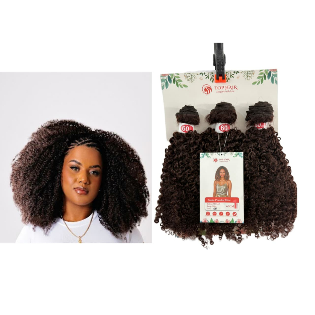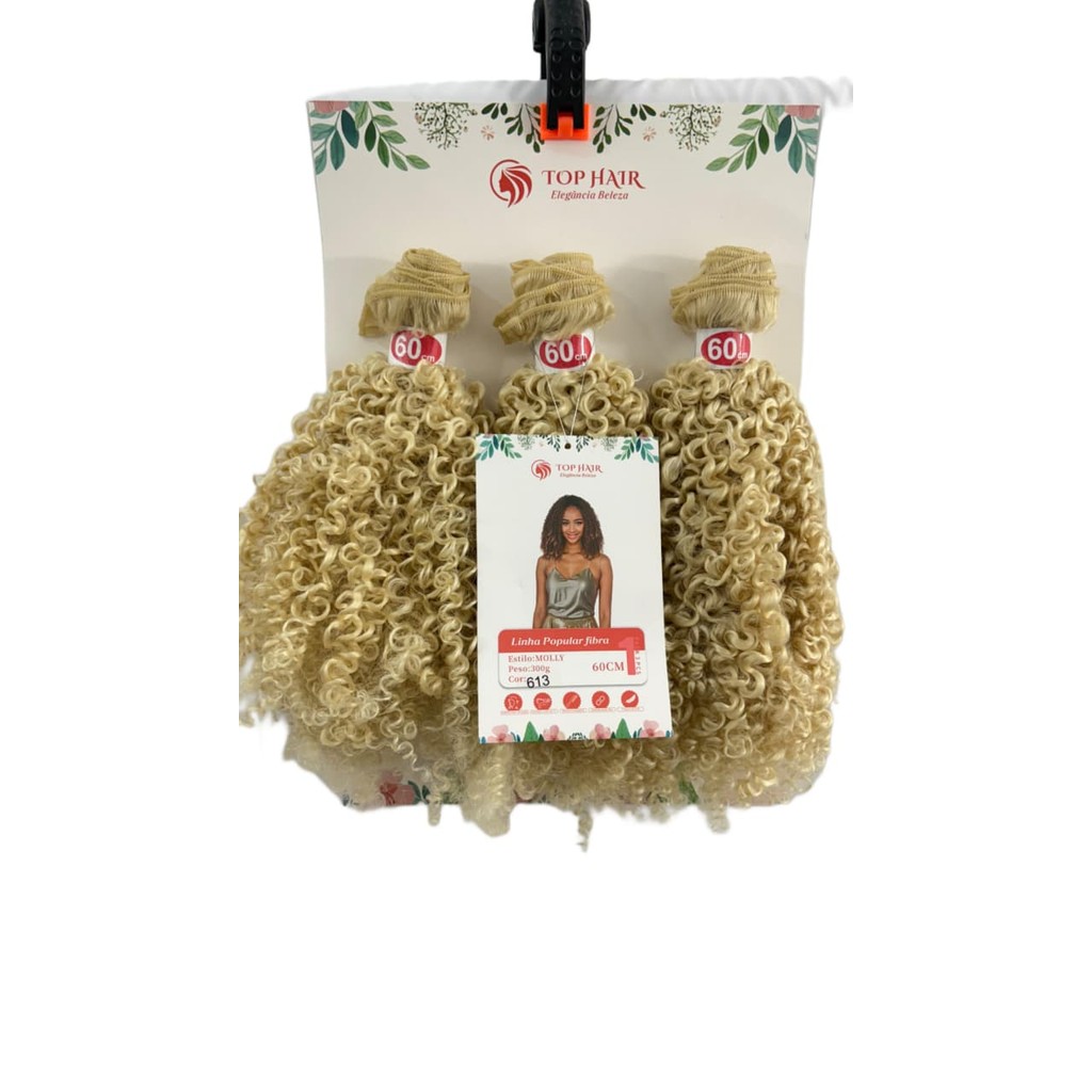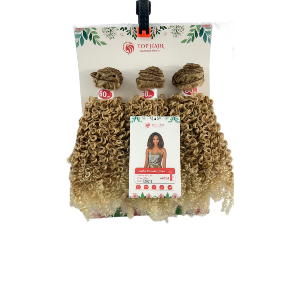Cabelo Goivo Cacheado Orgânico Bio Fibra com Colágeno 3Telas 60cm 300g Top Hair MOLLY