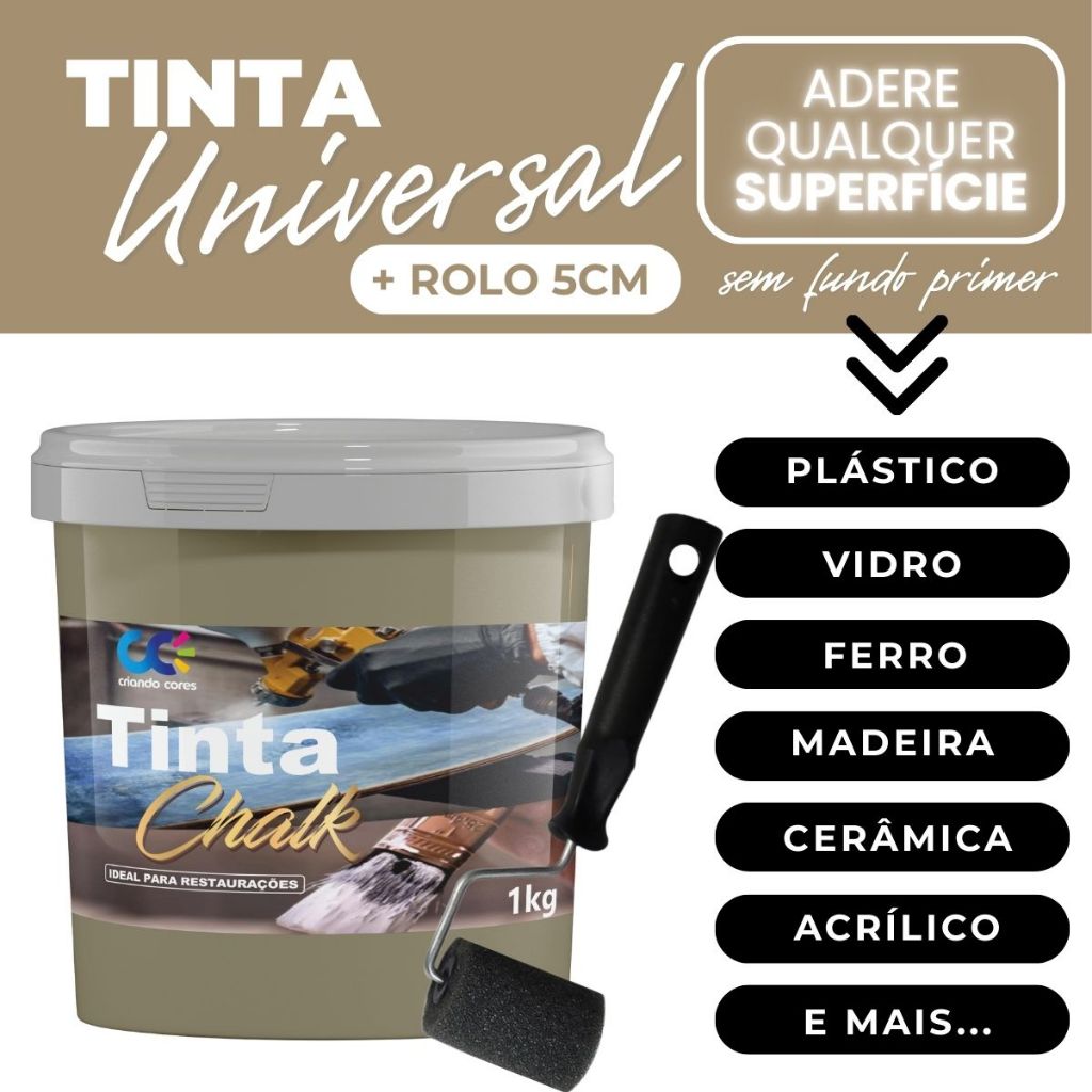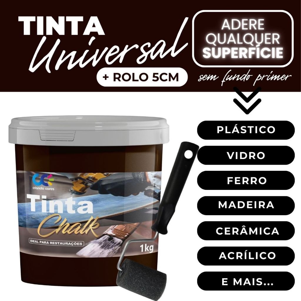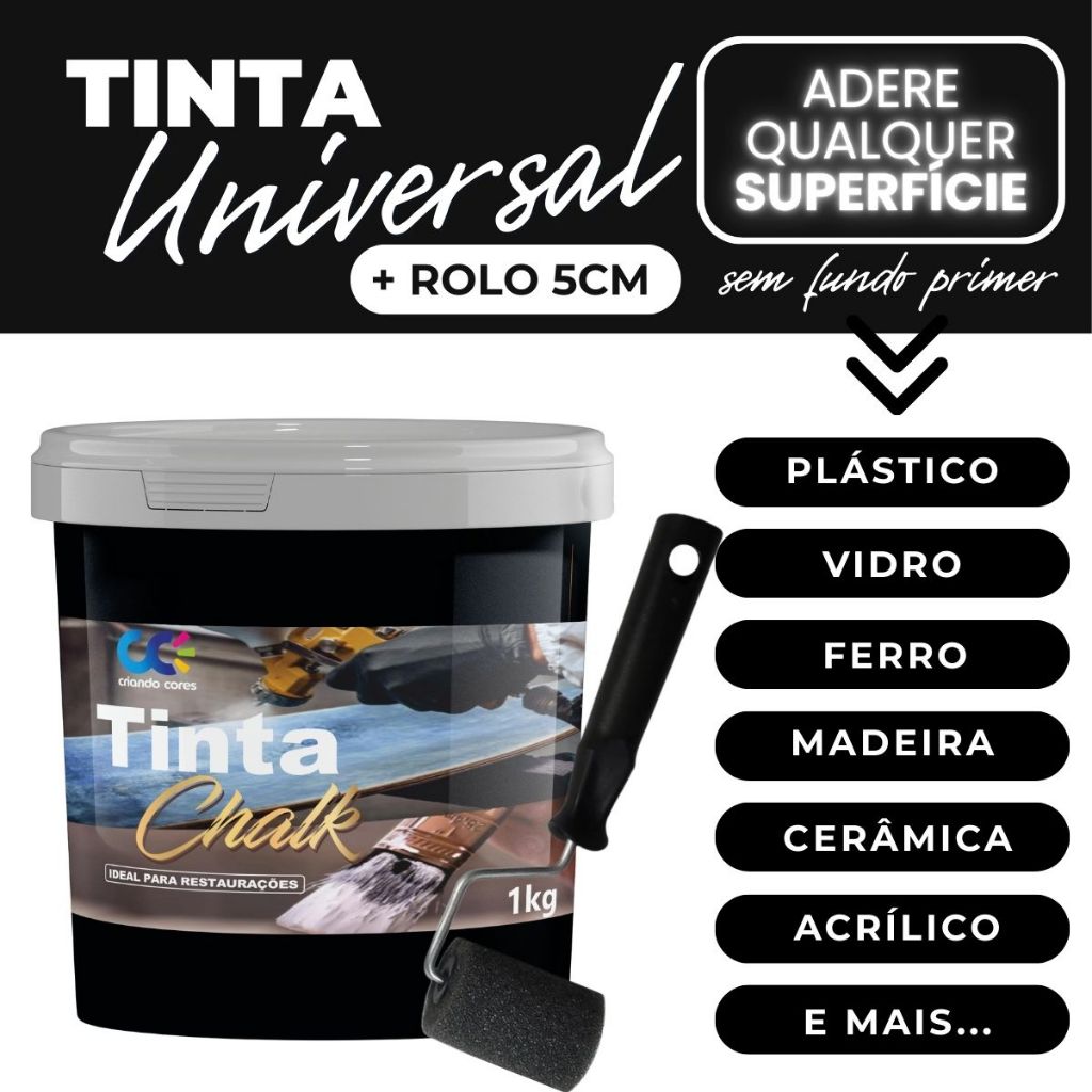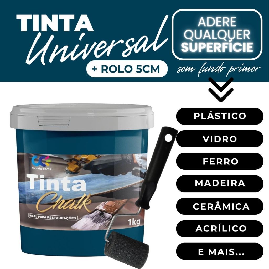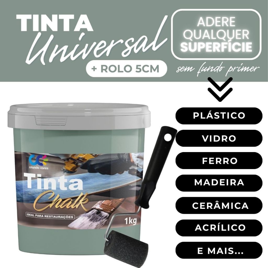 Tinta Chalk Universal Fosca Restauradora Móveis Madeira PVC Alumínio Plástico Ferro + Rolo de 5cm