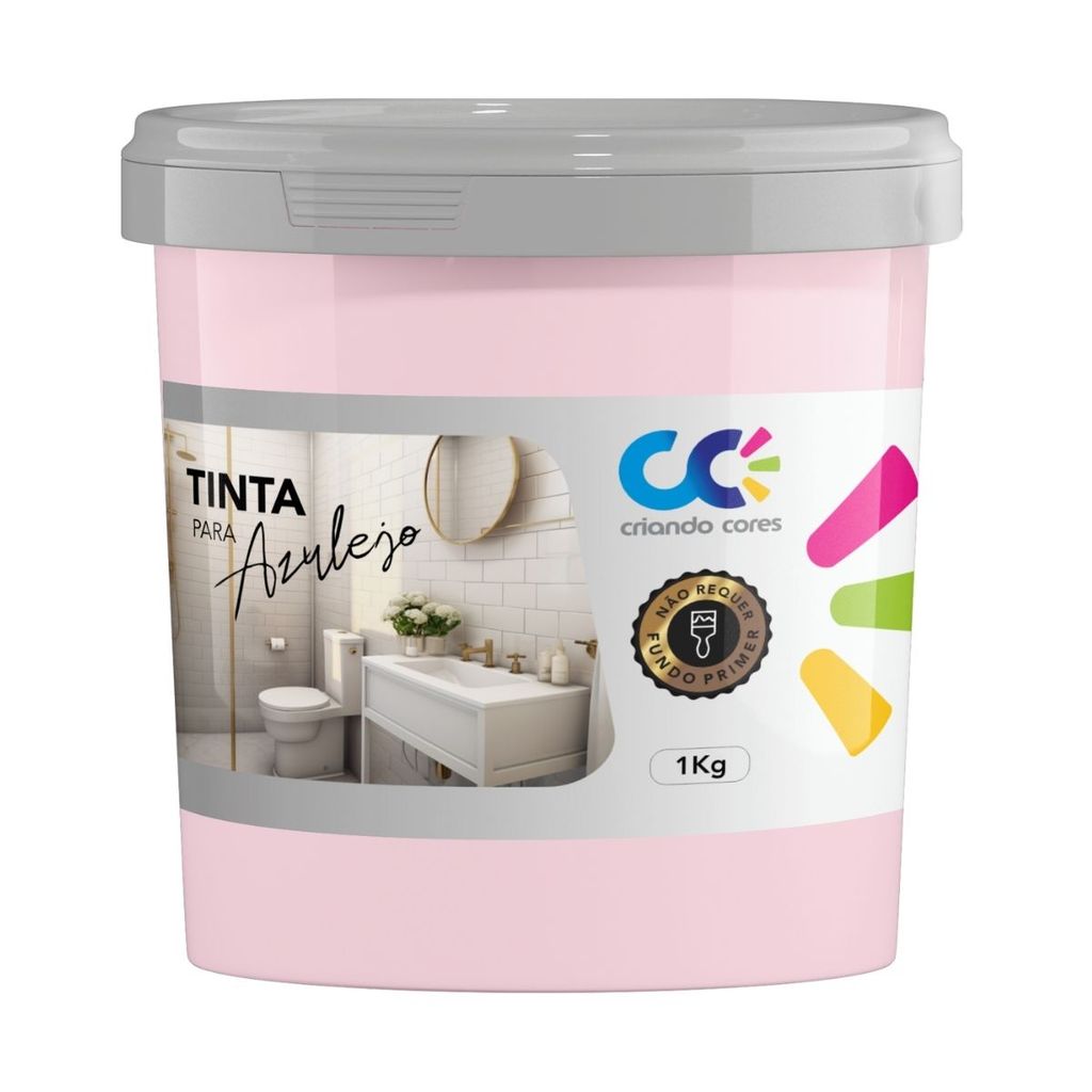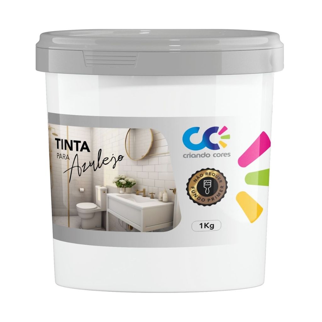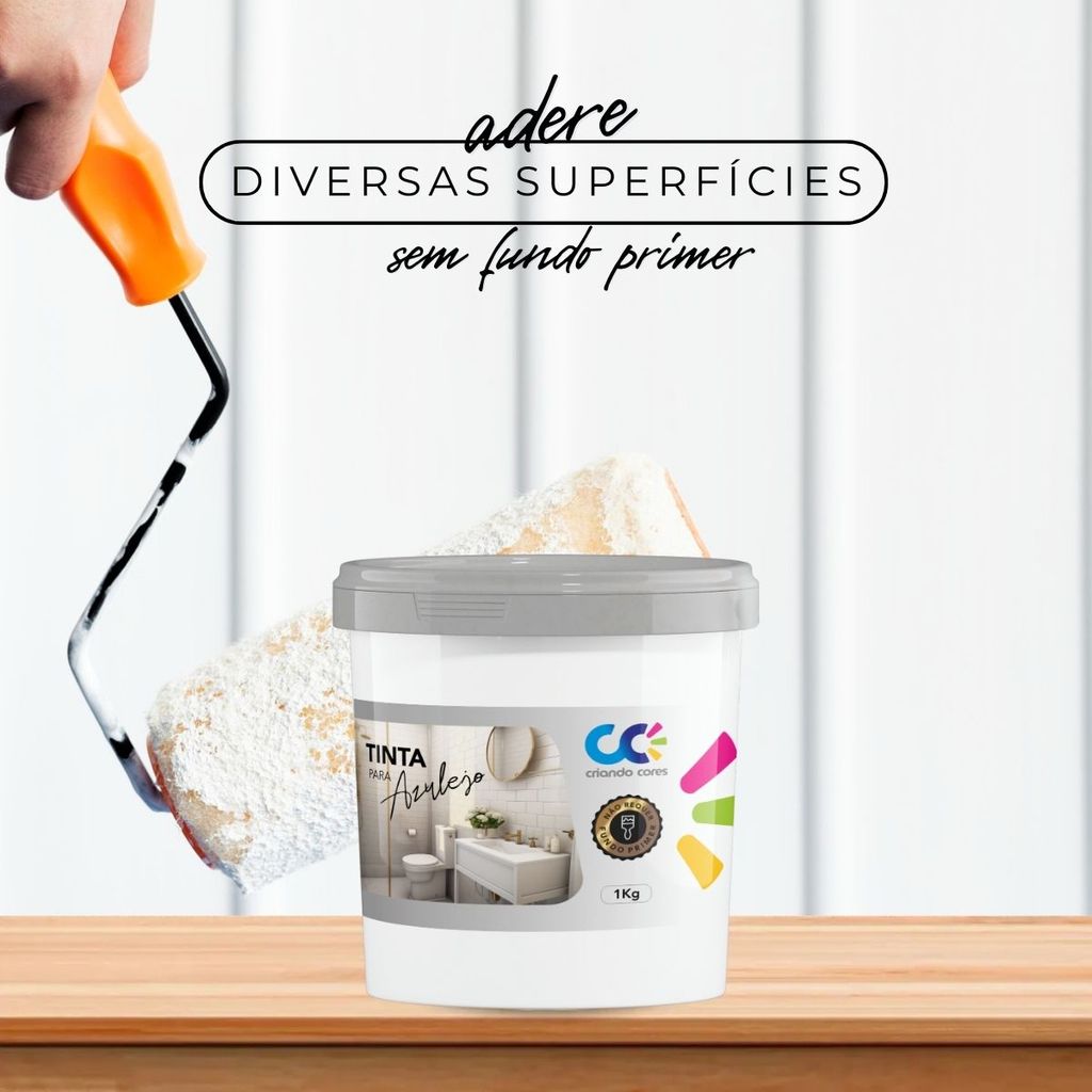 Tinta para Azulejo 1Kg + ROLINHO de 5cm VÁRIAS CORES Pronto Uso Alta Aderência Sem Primer Renovação Banheiro Cozinha
