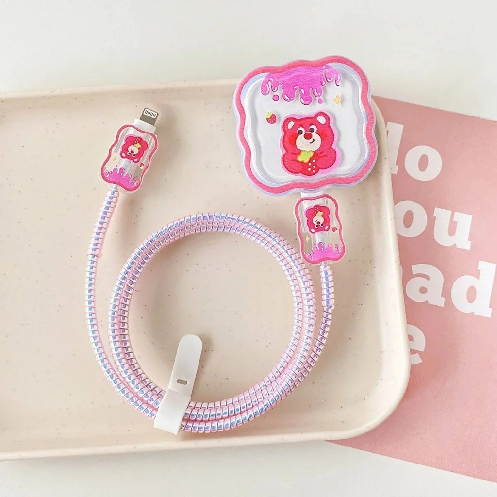 Tampa protetora do cabo de carregamento rosa de dados, Conjunto de proteção do armazenamento do cabo de dados de rosa