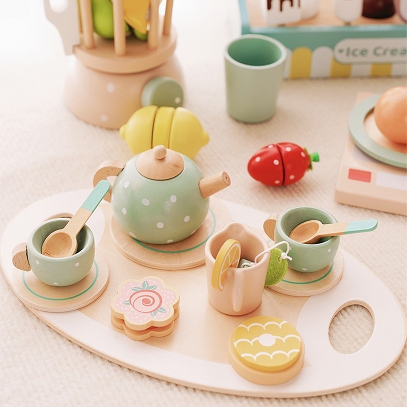 Jogo De Chá Da Tarde Cozinha Brinquedos Para Crianças De Madeira Meninas Sorvete