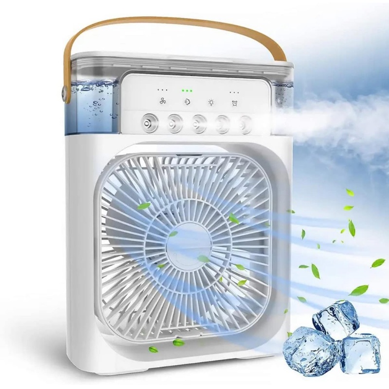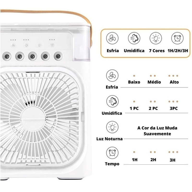 Climatizador Portátil 3 em 1: Ventilador, Umidificador e Luz LED com Reservatório de Água e Carregamento USB Tipo-C