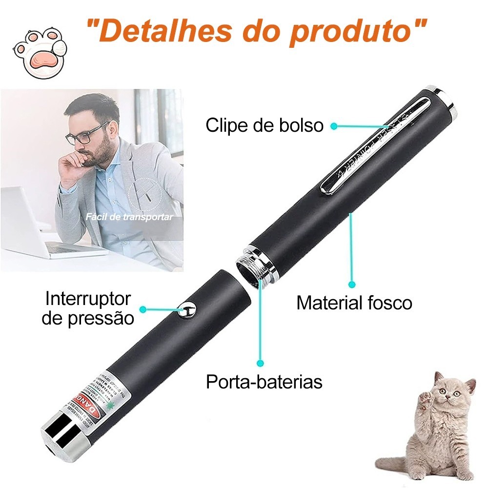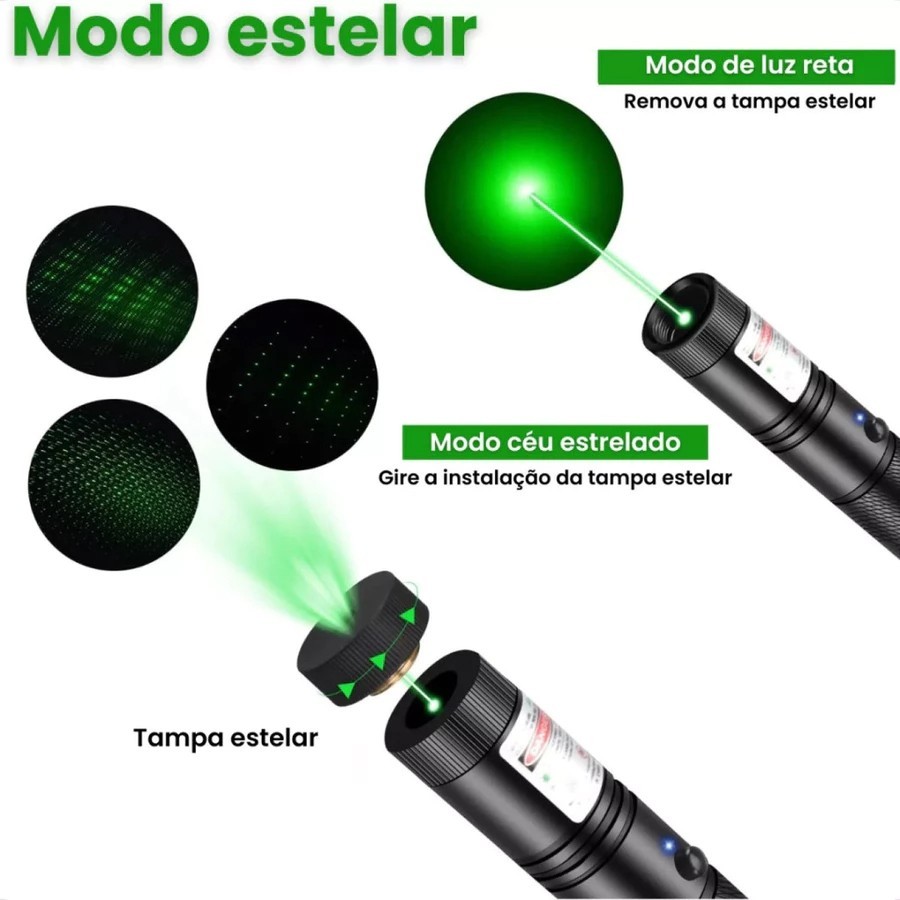 Caneta Laser Verde Recarregável , Pointer com Bateria e Chave de Segurança, Alta Visibilidade #Laser 303