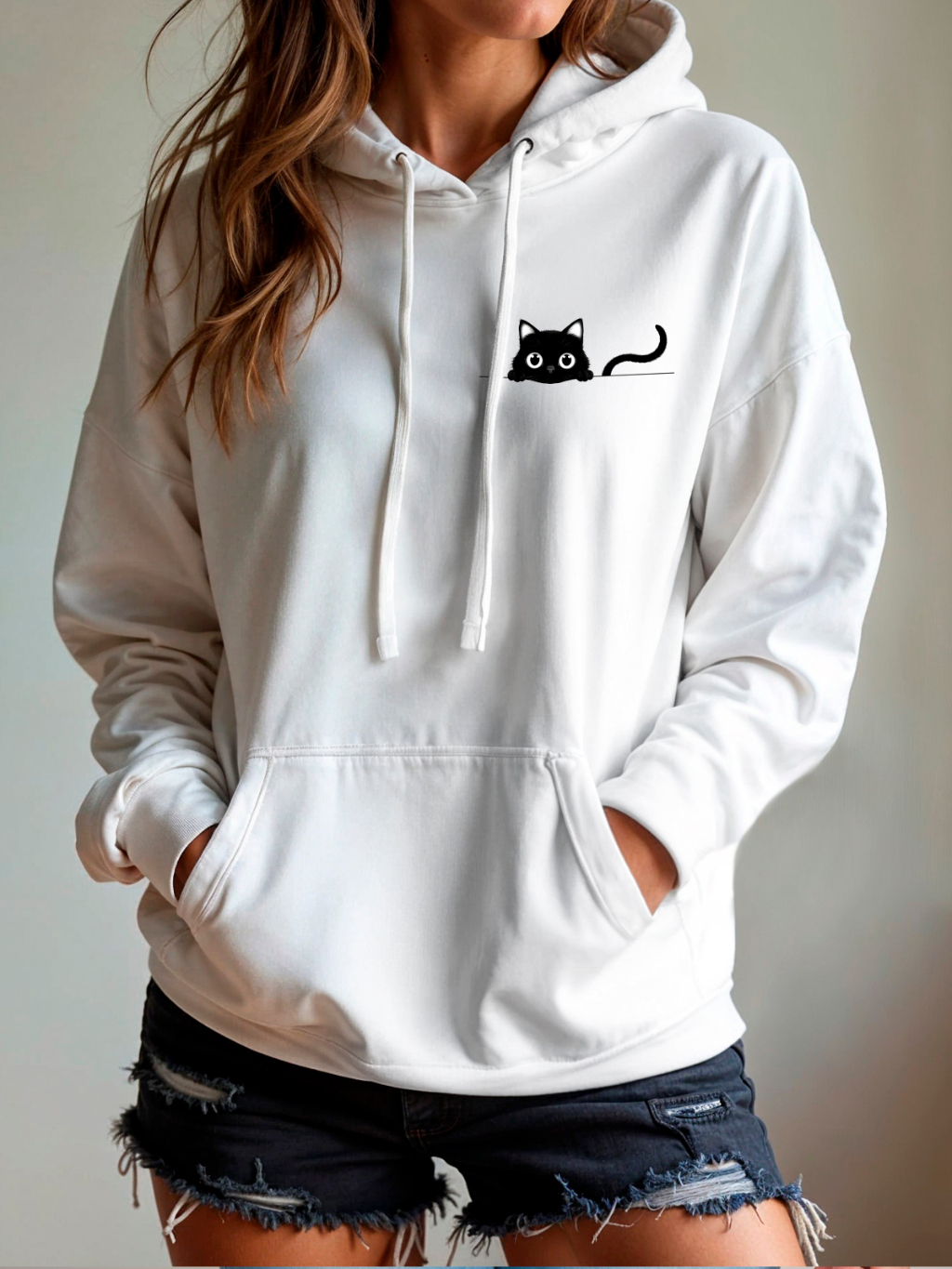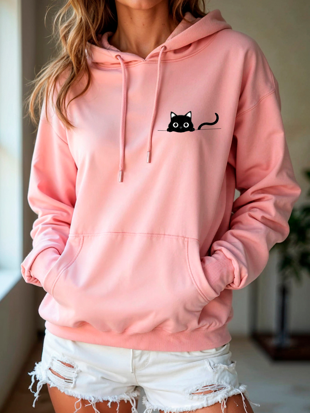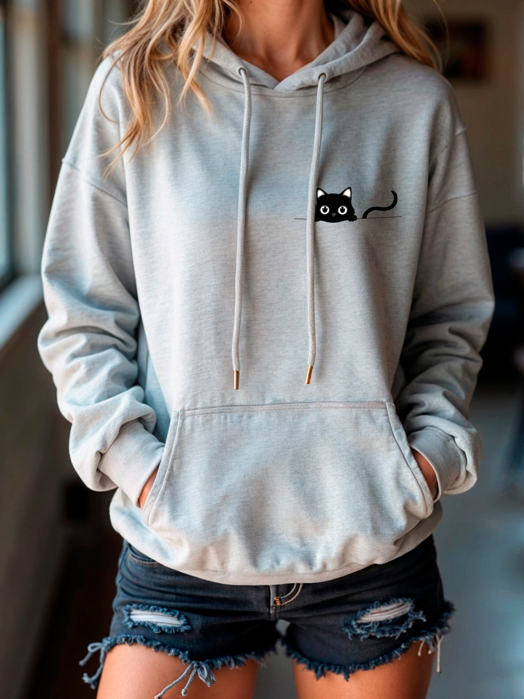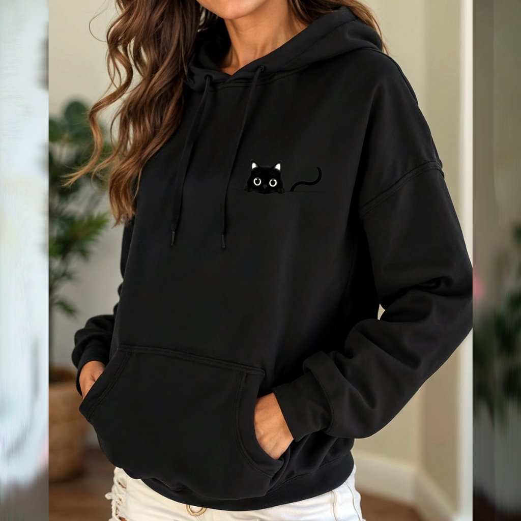 Moletom Canguru Blusa De Frio Inverno Moletom Feminino Capuz Blusao Unissex Fofinho Estampado Gato