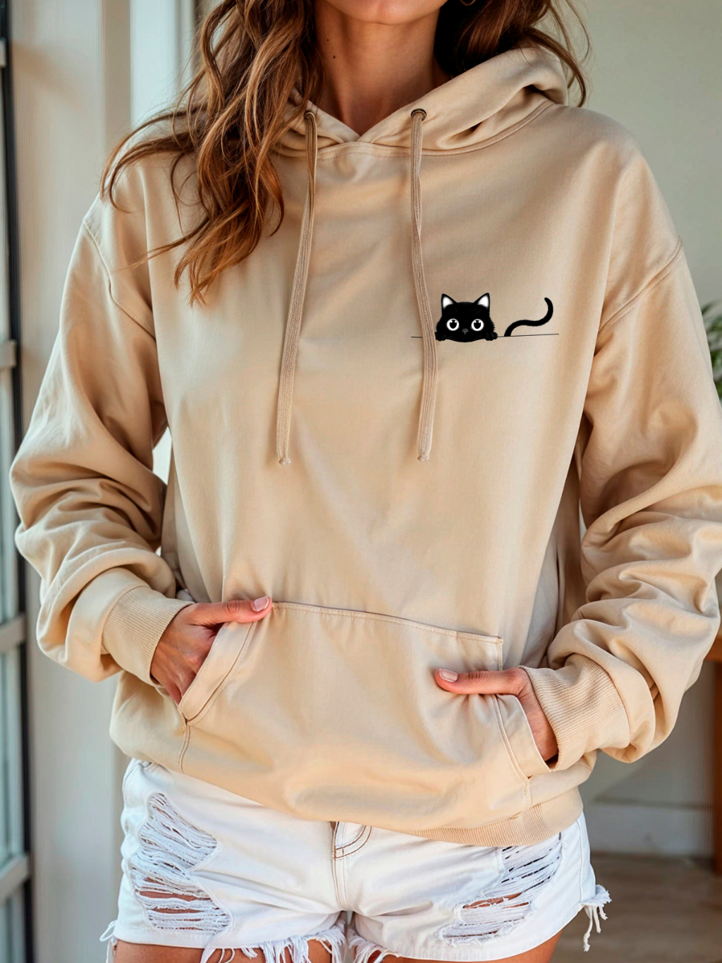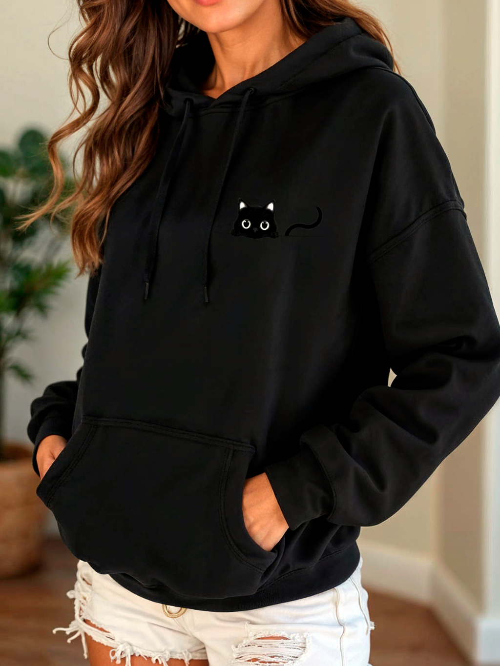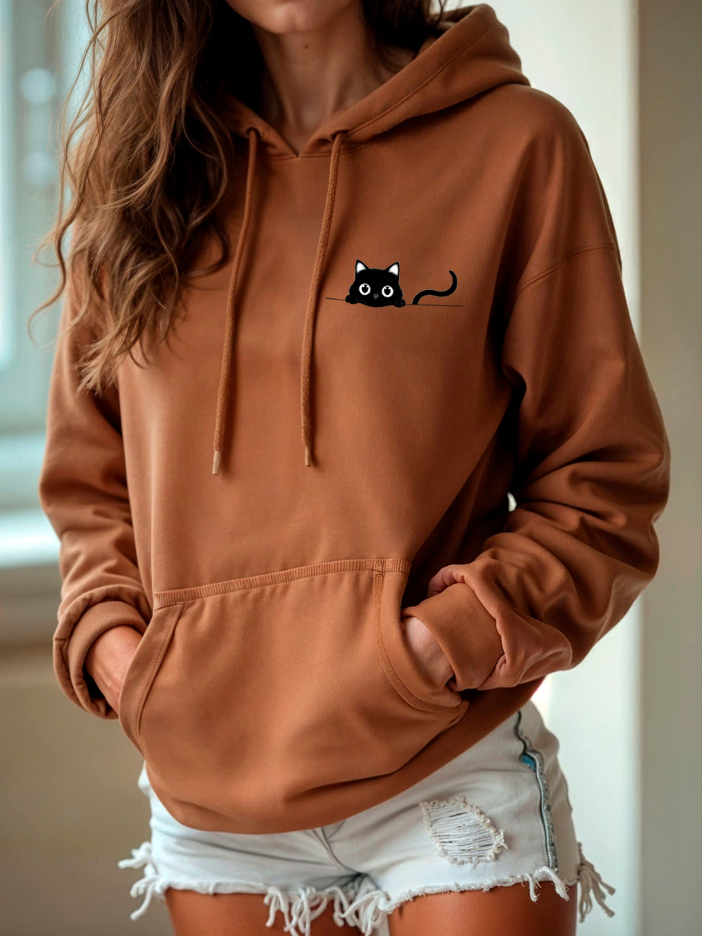 Moletom Canguru Blusa De Frio Inverno Moletom Feminino Capuz Blusao Unissex Fofinho Estampado Gato