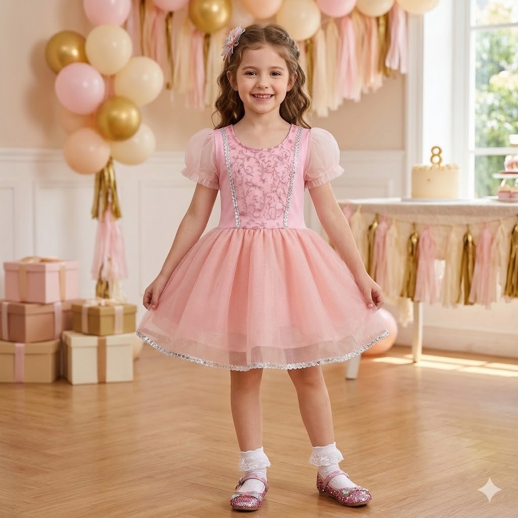 Vestido Princesa Aurora Bela Adormecida Rosa Festa Aniversário Roupa de Menina Brilho Organza