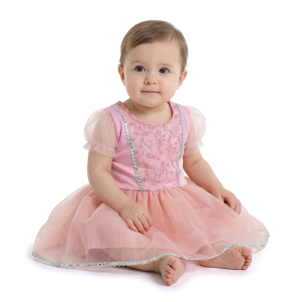 Vestido Aurora Bebê Fantasia Menina Infantil Merversário Roupa Bela Adormecida Rosa Newborn Temático