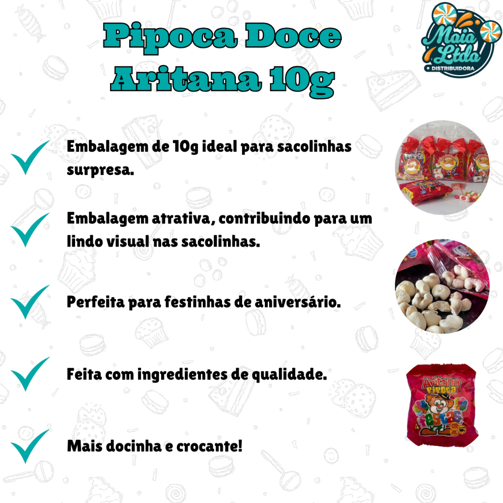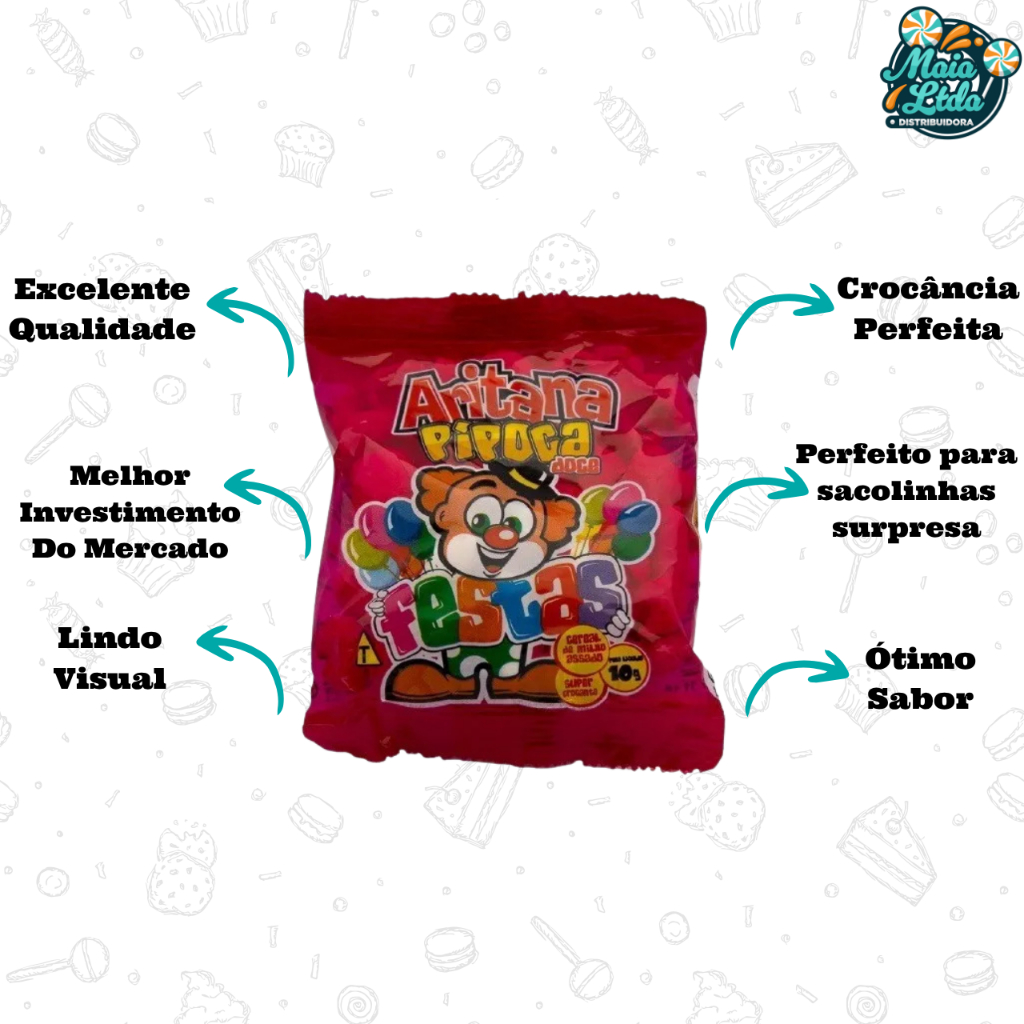 Fardo De Pipoca Doce Festas 10g Com 50 Unidades Para Sacolinha Surpresa e Lembrancinha - Aritana