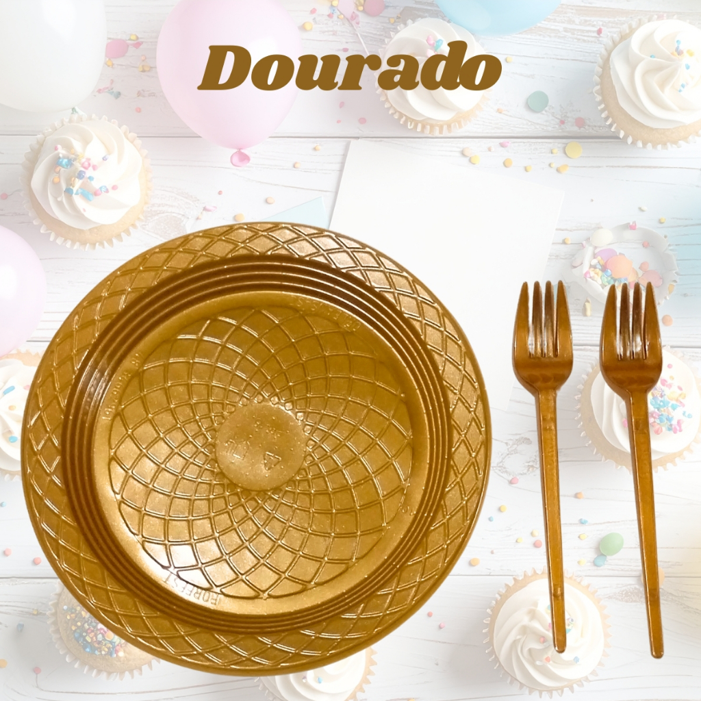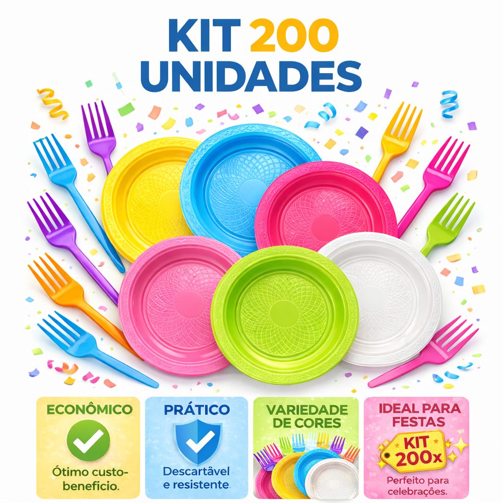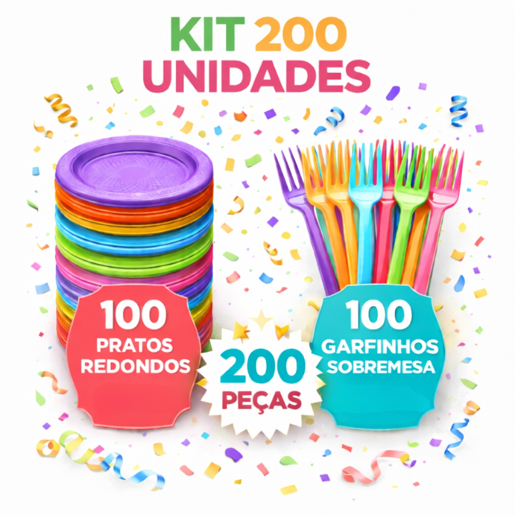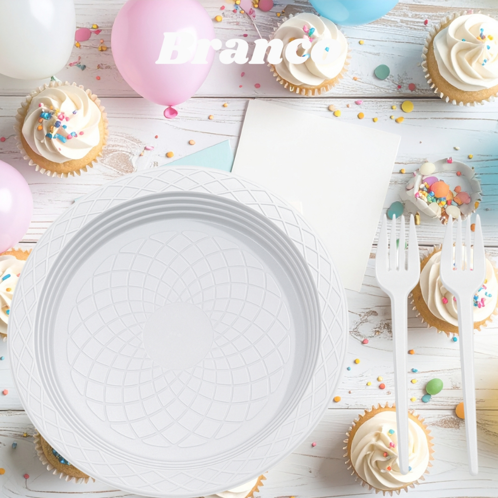 Kit Festa 200 Unidades – Prato e Garfo Descartável para Sobremesa/Bolo