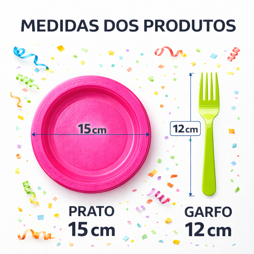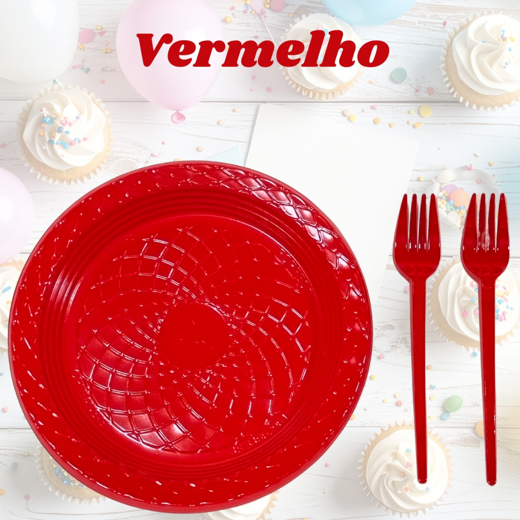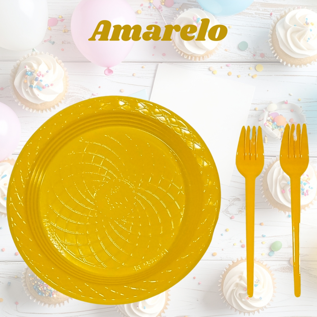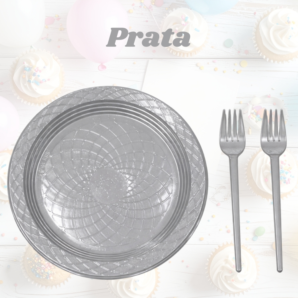 Kit Festa 200 Unidades – Prato e Garfo Descartável para Sobremesa/Bolo