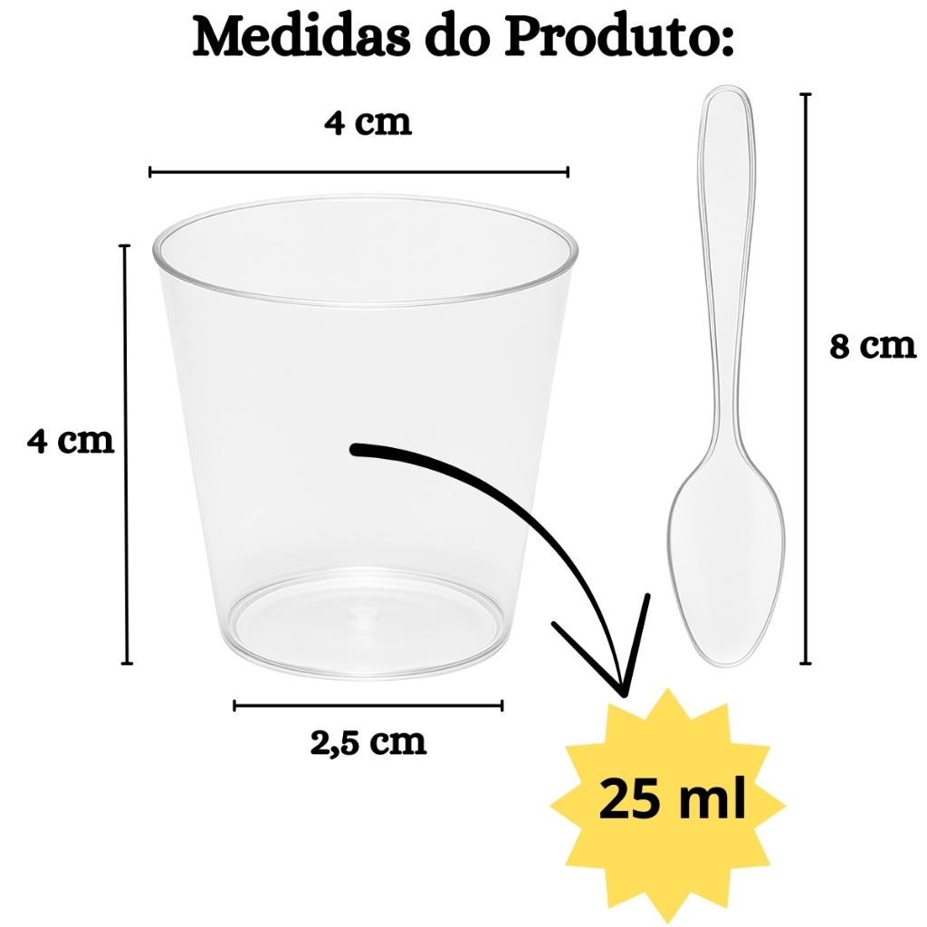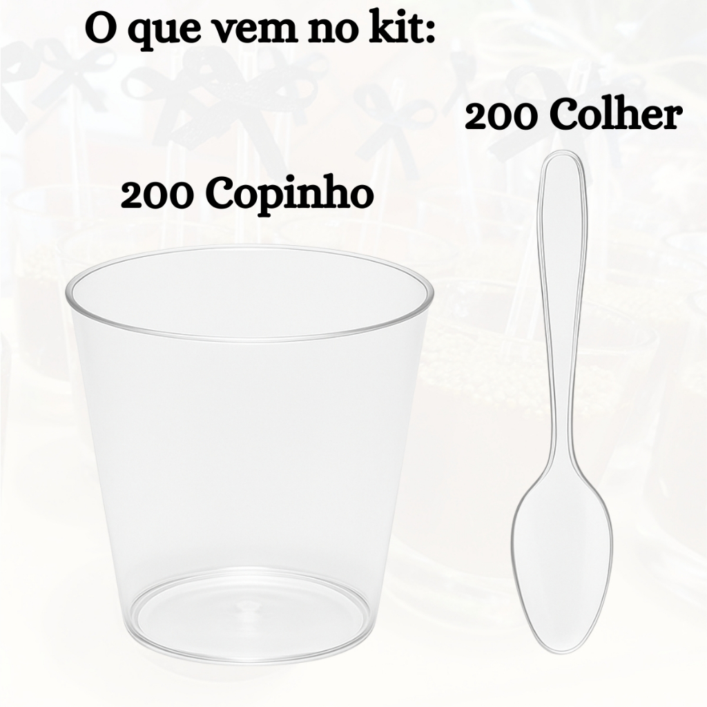200 Unidades Copo Brigadeiro 25ml Transparente + 200 Mini Colher Festa Aniversário