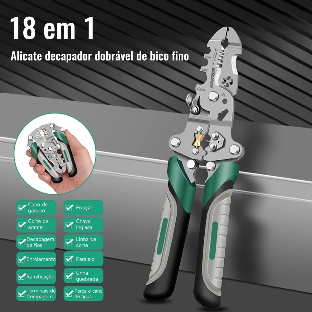 18 em 1 Alicate Automático Dobrável Decapador Crimpador Eletricista Descacador Fios Decapador