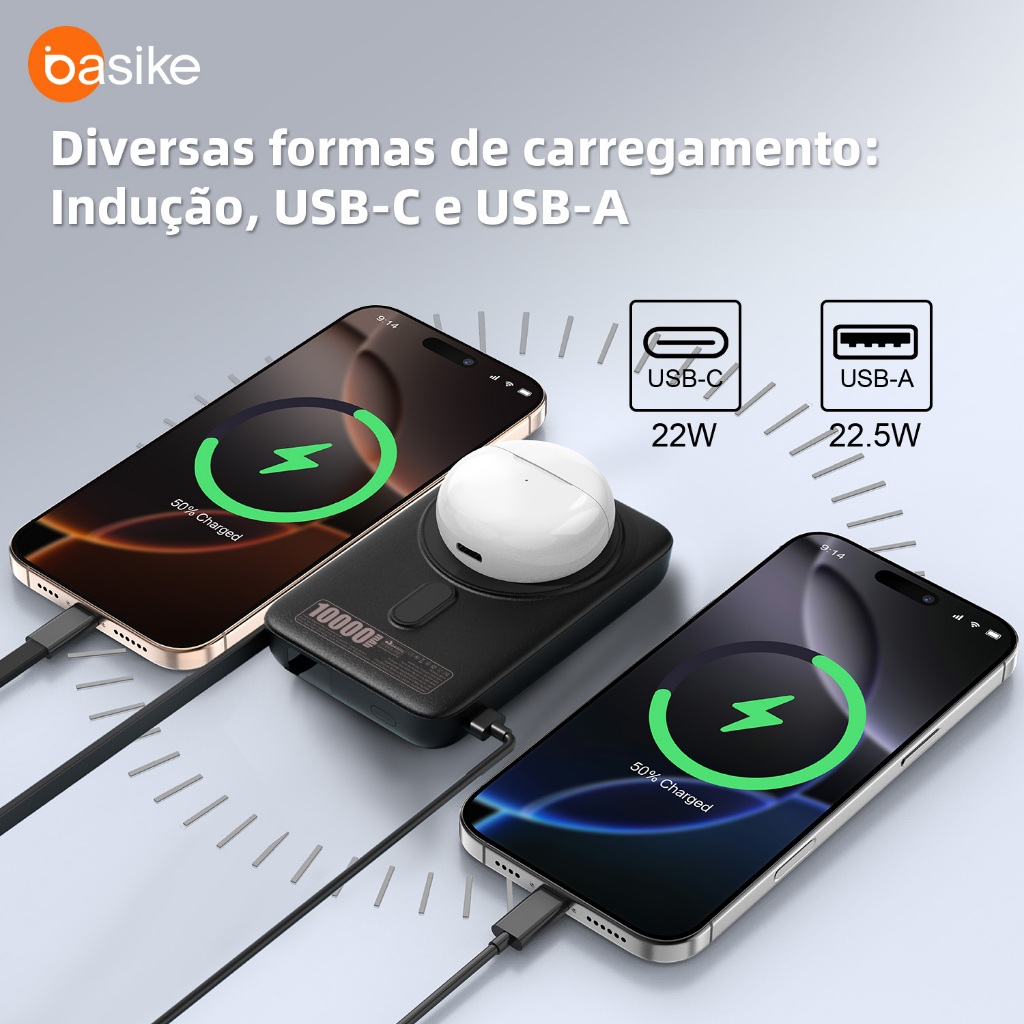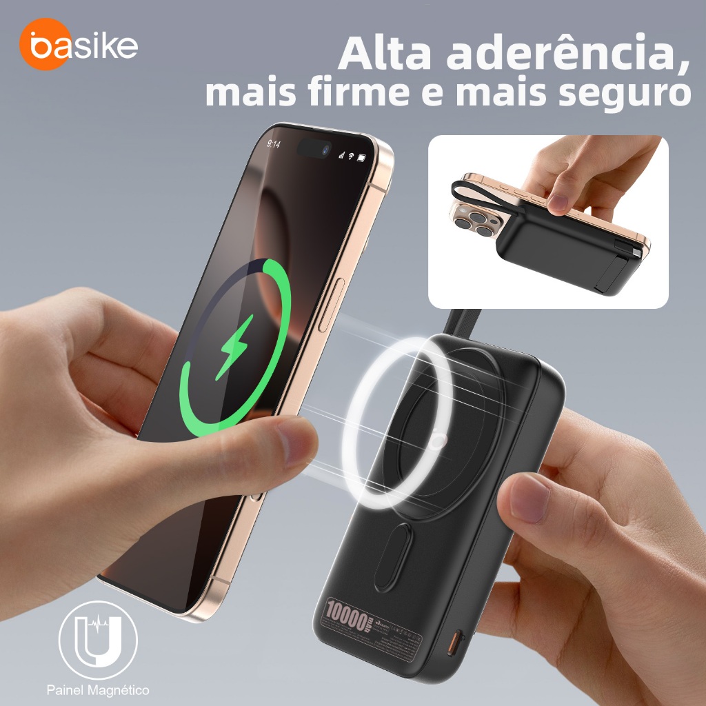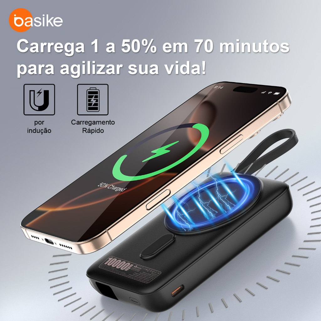 Basike 5000/10000mAh Carregador Portátil Indução para iPhone/Android Samsung Apple Sem fio Bateria Carga