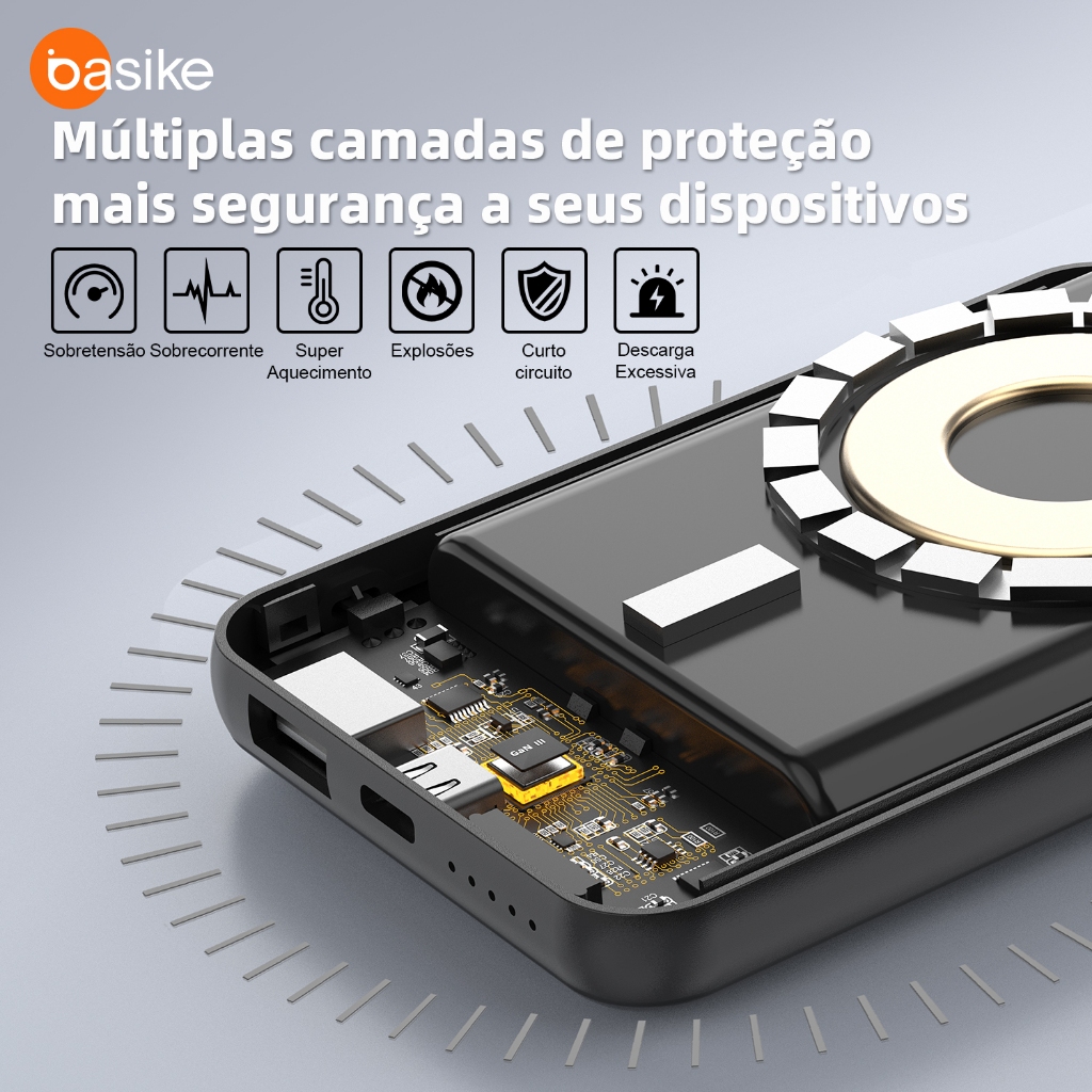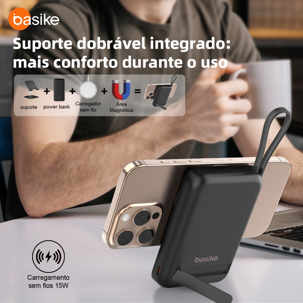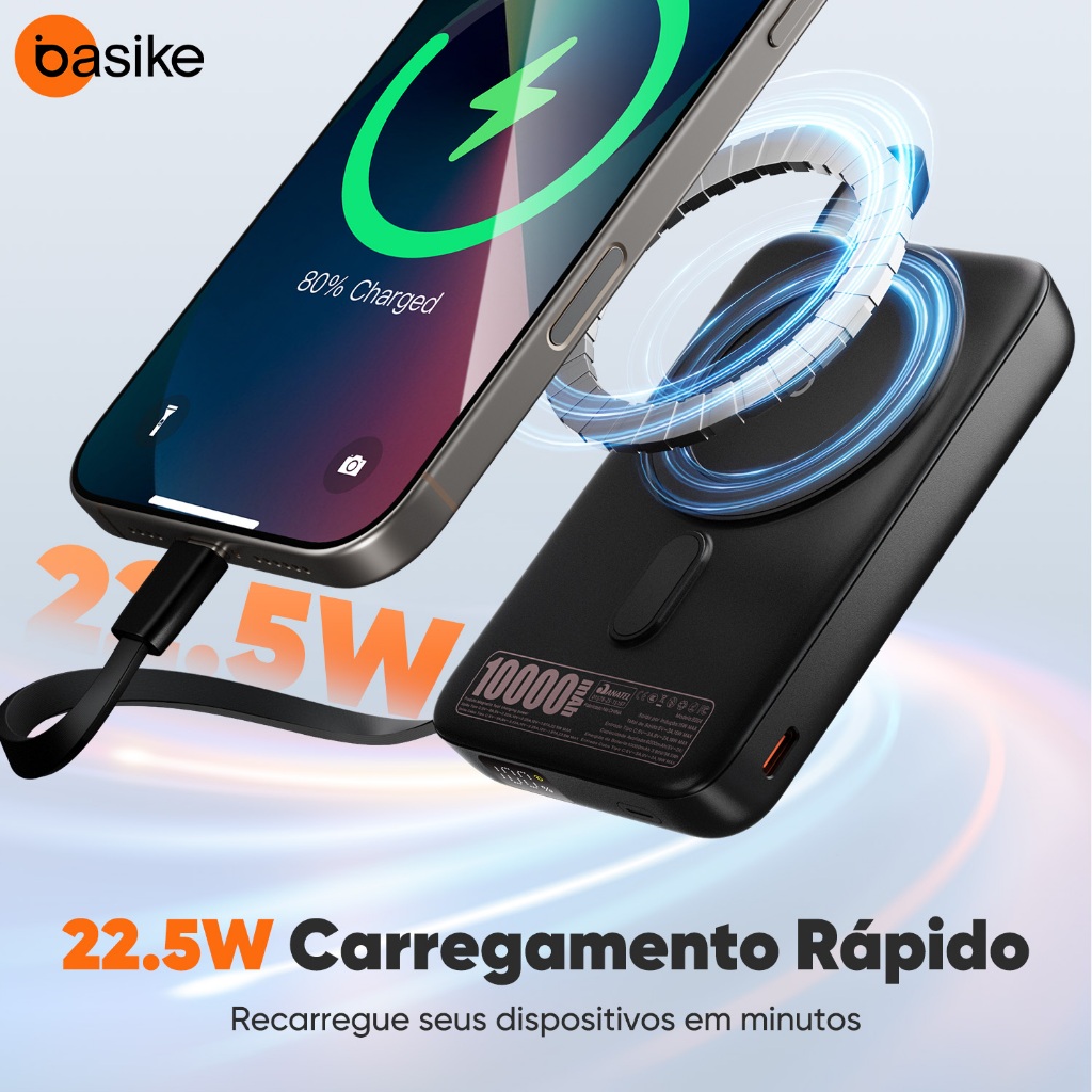 Basike 5000/10000mAh Carregador Portátil Indução para iPhone/Android Samsung Apple Sem fio Bateria Carga