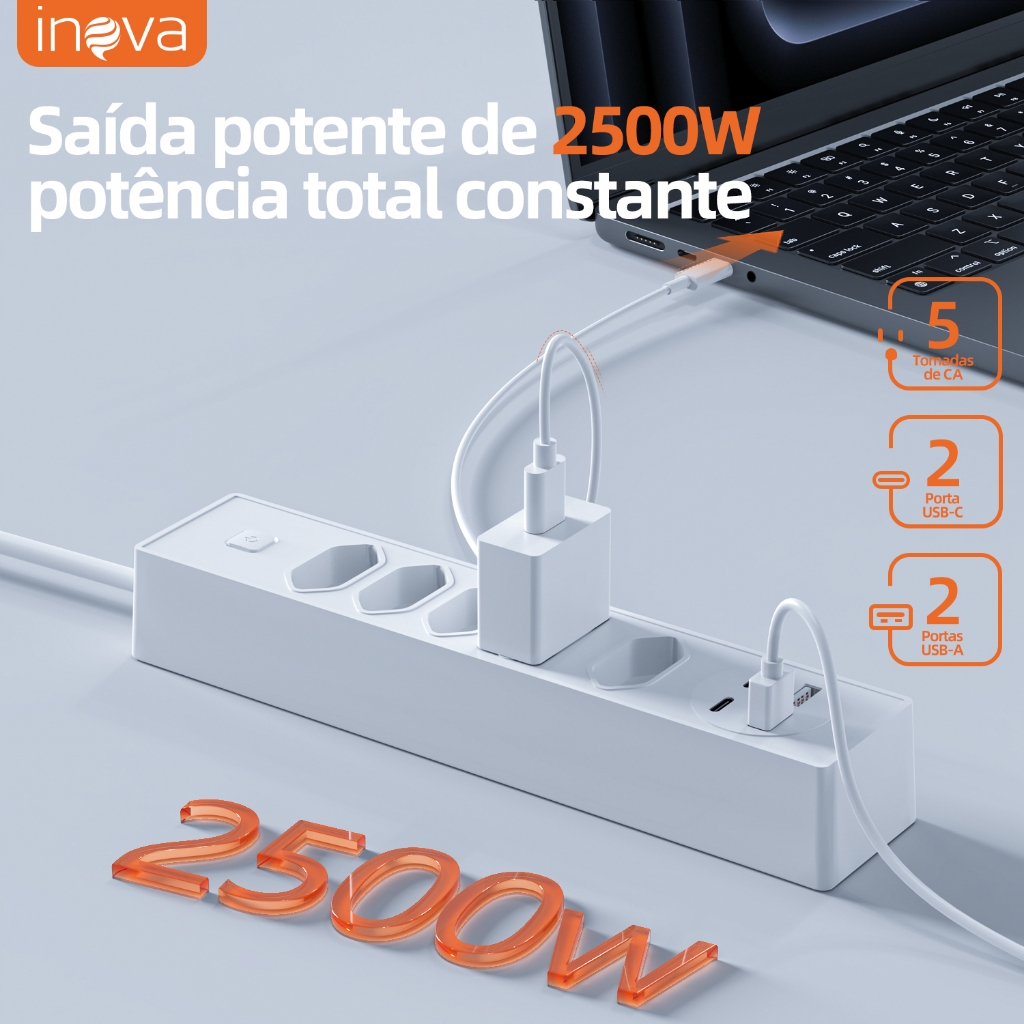 【2m】Inova Régua Filtro de Linha Filtro de linha com protetor contra surtos (DPS) 110/220 volts