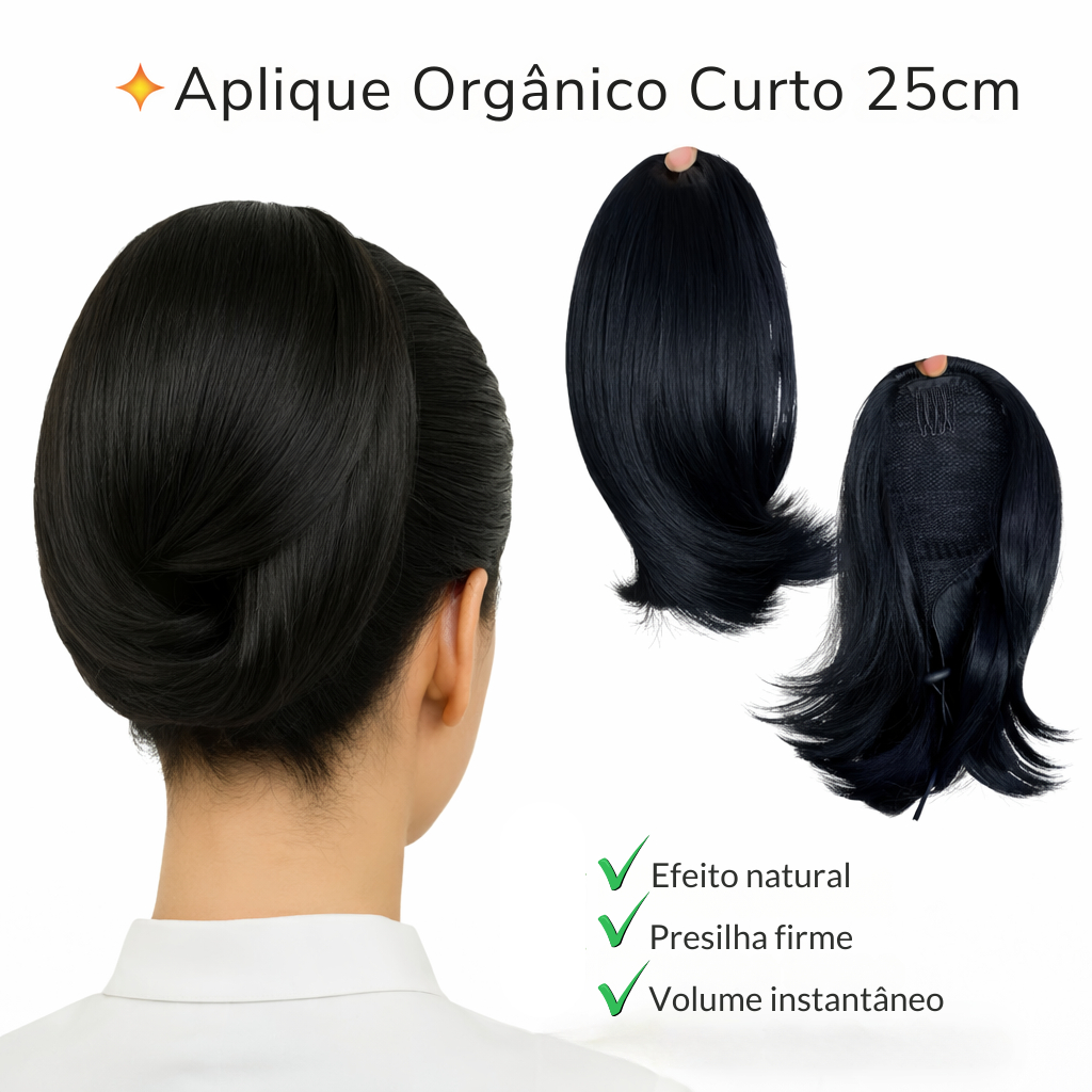 Aplique Rabo De Cavalo Véspera Orgânico Curto 25cm Fibra Orgânica Aspecto Natural