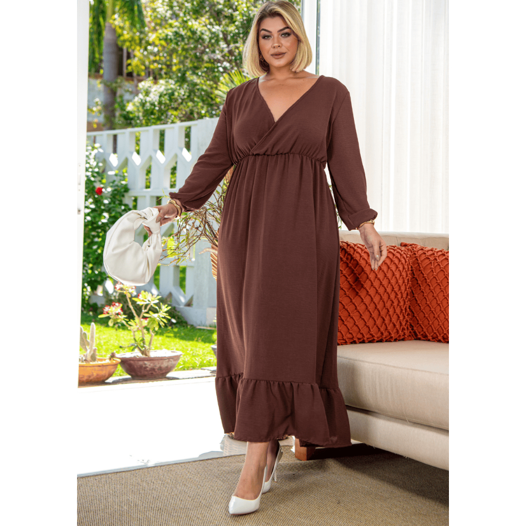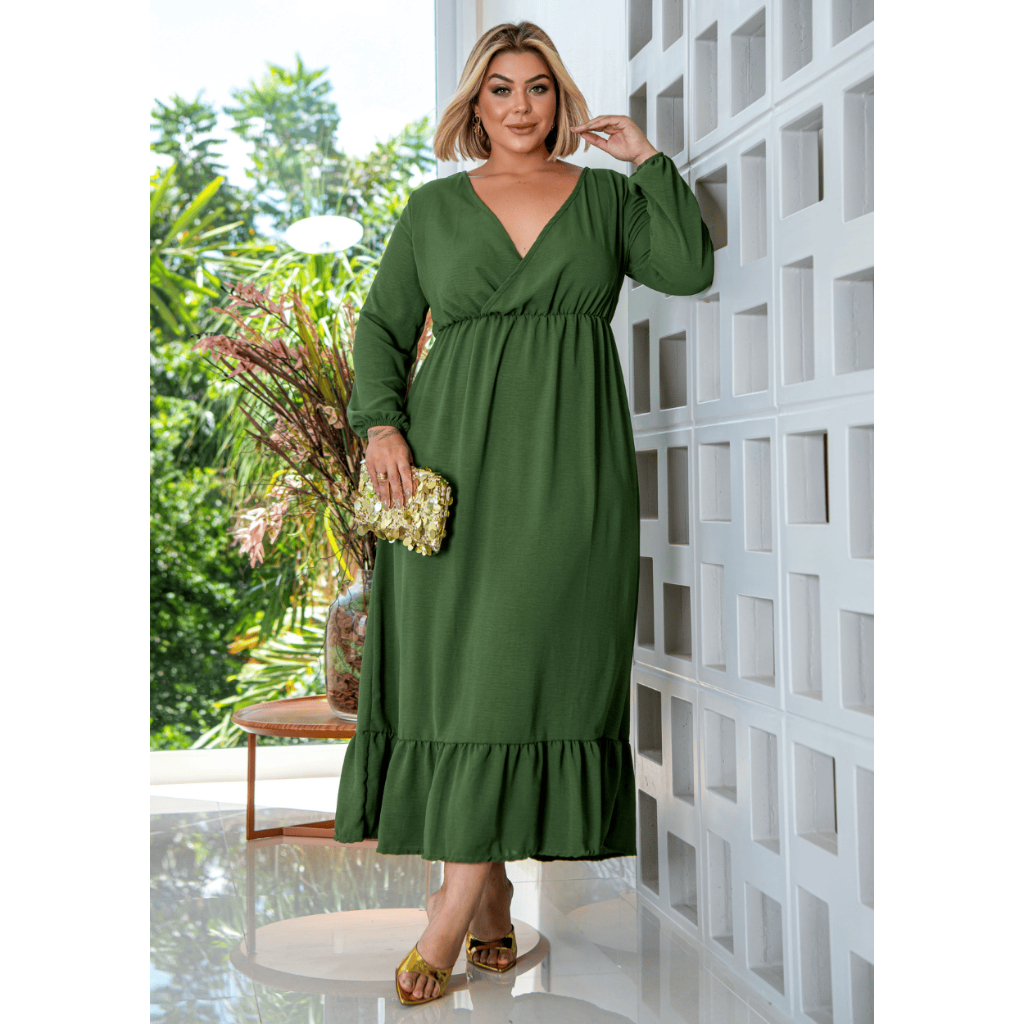 Vestido Longo Plus Size Evento Decote V Valoriza Busto Grande Modelador Premium
