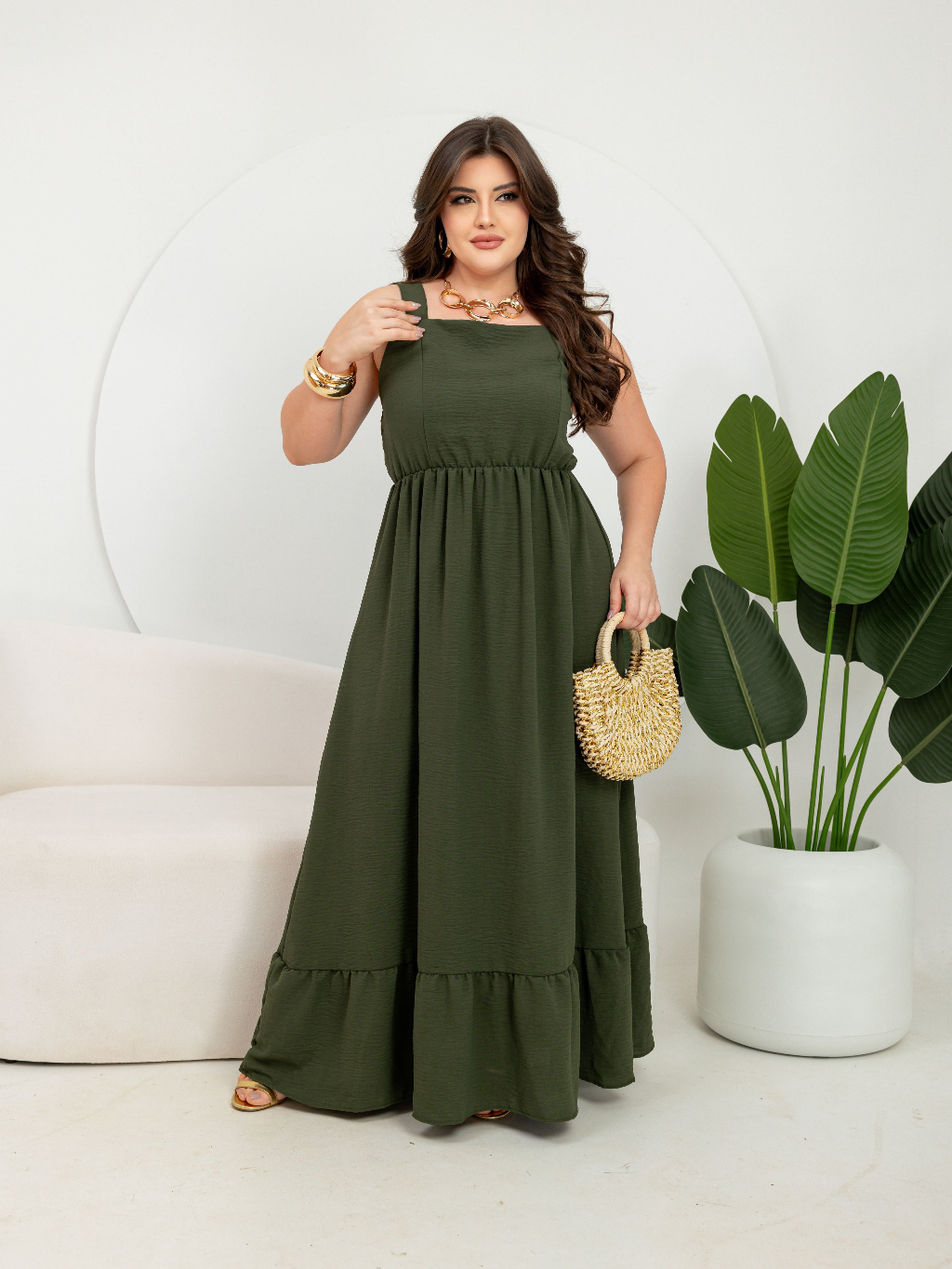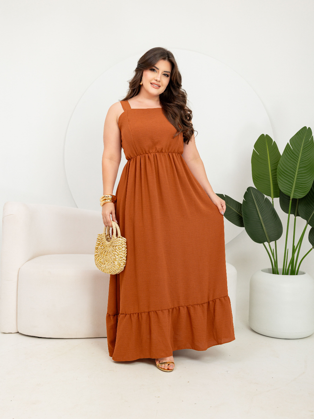Vestido Plus Size Confortável Liso Soltinho Moda Verão Alcinha