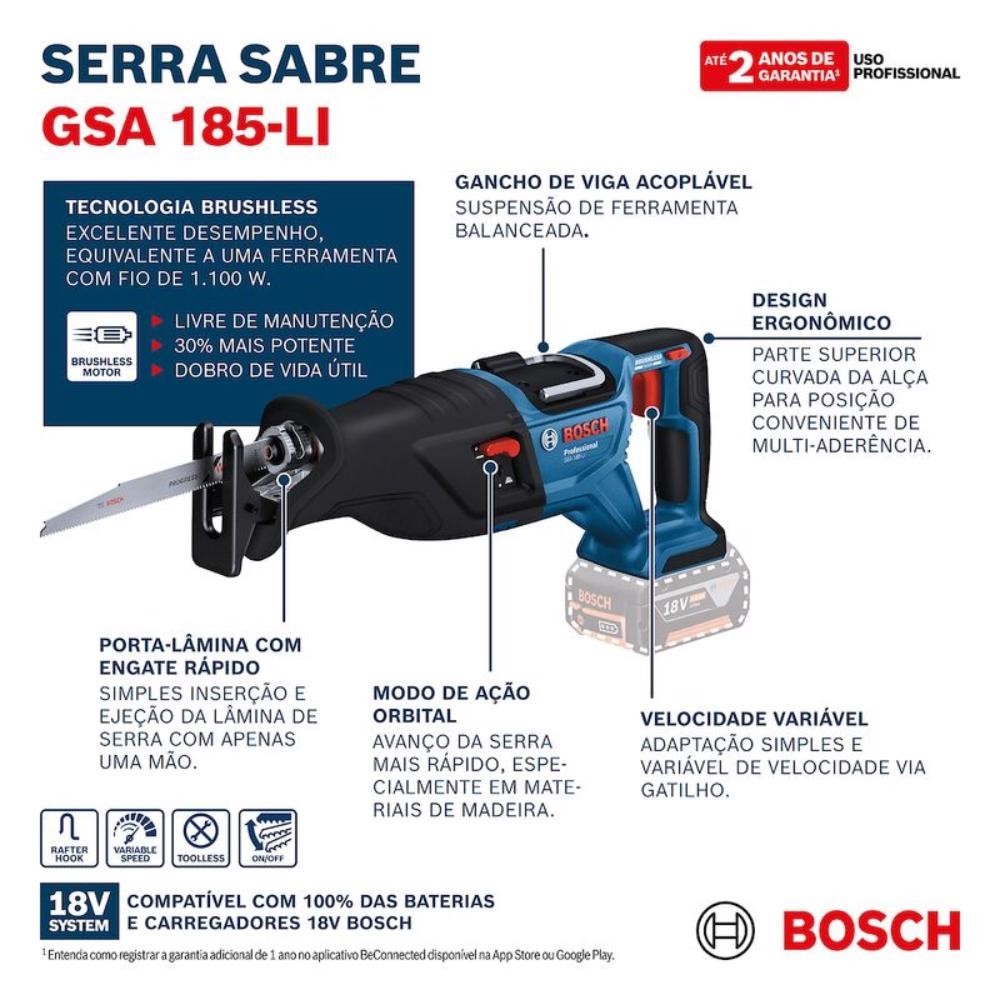 Serra Sabre a Bateria 18V GSA 185-LI com 2 Lâminas BOSCH