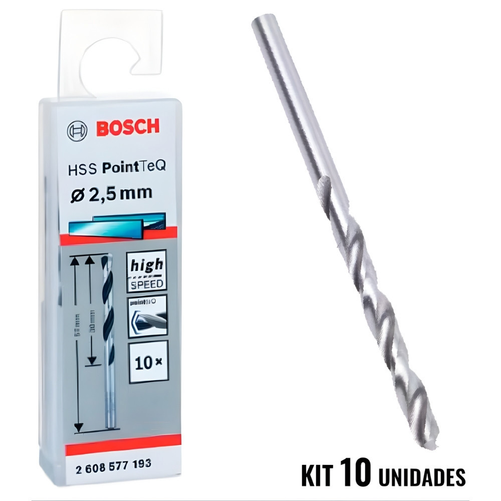 Broca Aço Rápido HSS 2.5 MM PointTeQ Kit 10 Unidades BOSCH