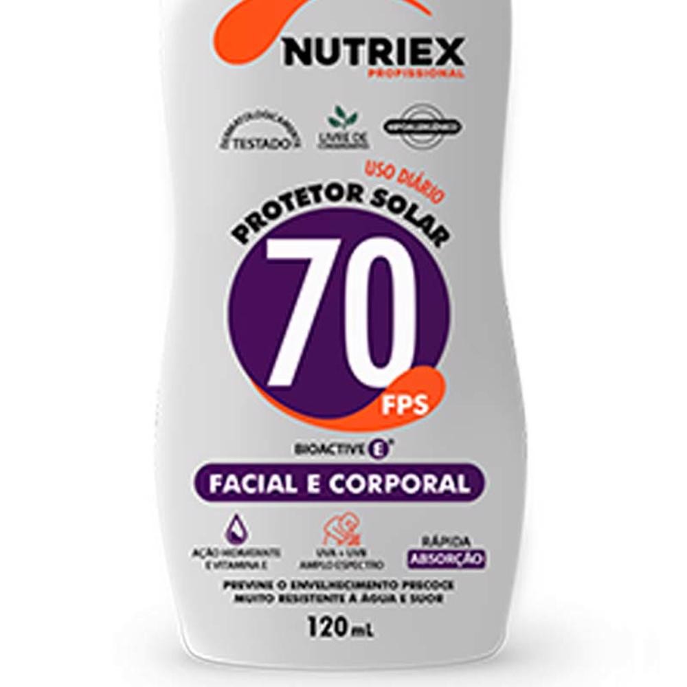 Protetor Solar FPS 70 Facial e Corporal Bisnaga 120ML NUTRIEX
