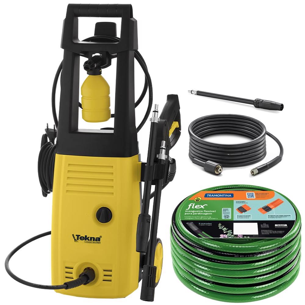 Lavadora de Alta Pressão 1400W Shampoozeira Rodas e Mangueira 10 Metros TEKNA