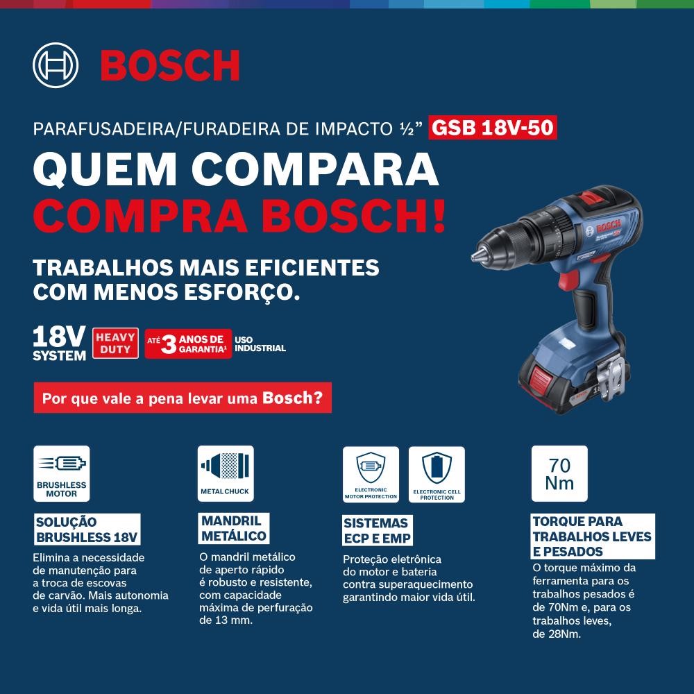 Parafusadeira Furadeira de Impacto Bateria 18V Motor Brushless 2 Baterias e Maleta GSB 18V-50 BOSCH