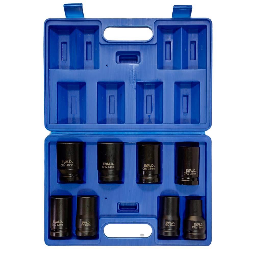Jogo de Soquetes Longos de Impacto 1" 19-41MM 80MM EVSLI-8 8 Peças EVALD