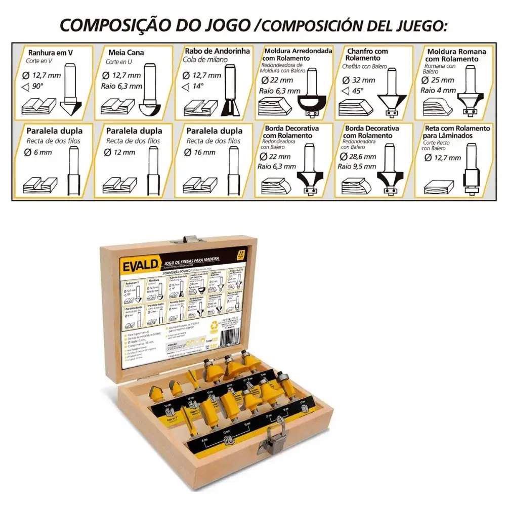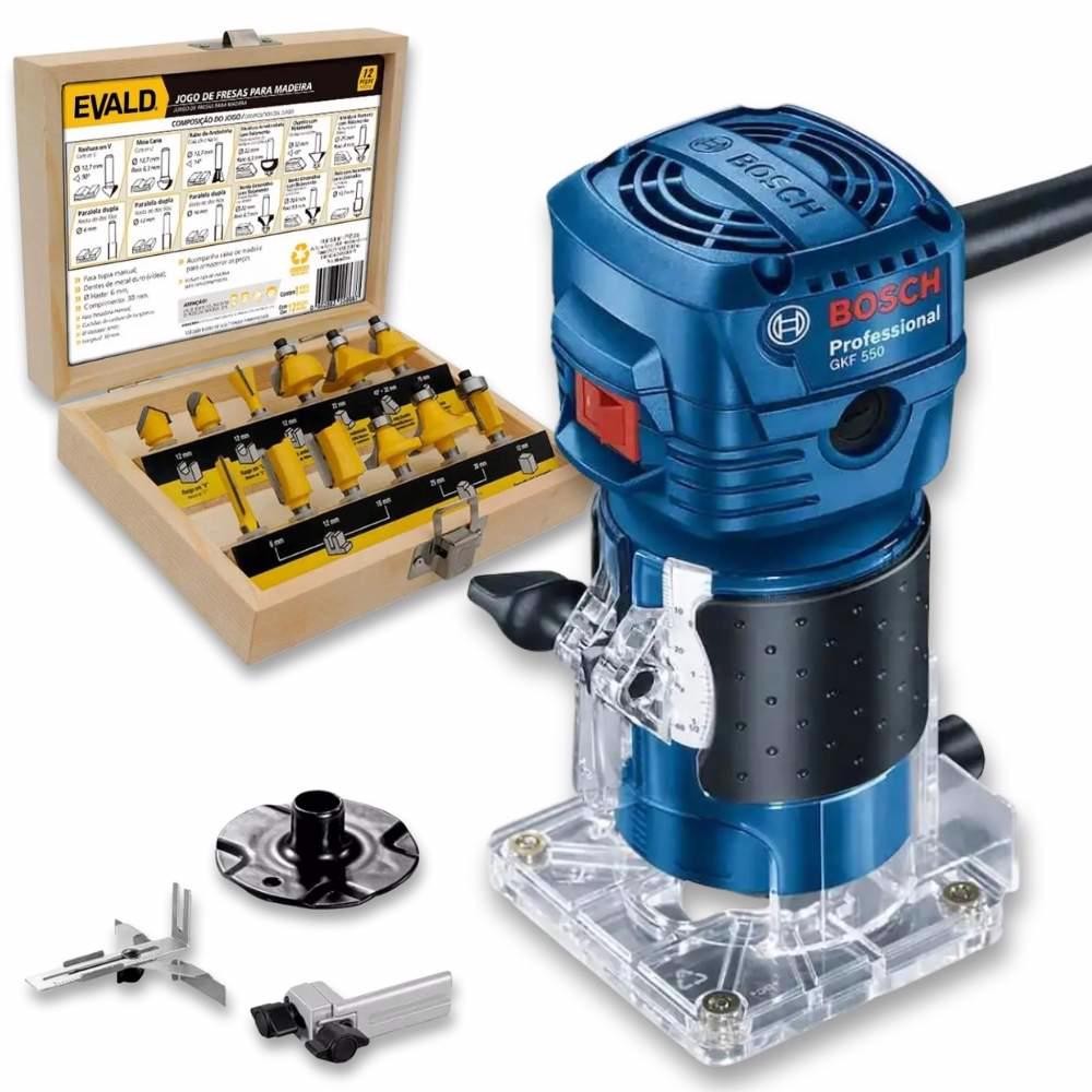 Tupia 6mm para Laminado 160A 550W BOSCH com Jogo de Fresas 12 Peças 6mm EVALD