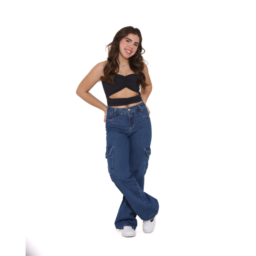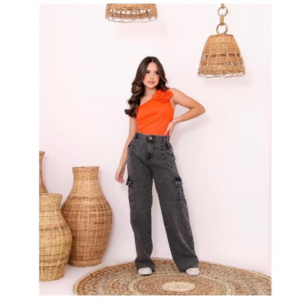 Calça Jeans Feminina Cargo Grafite Cargo Black Reta Menina Adolescente Infantil Juvenil 10-16
