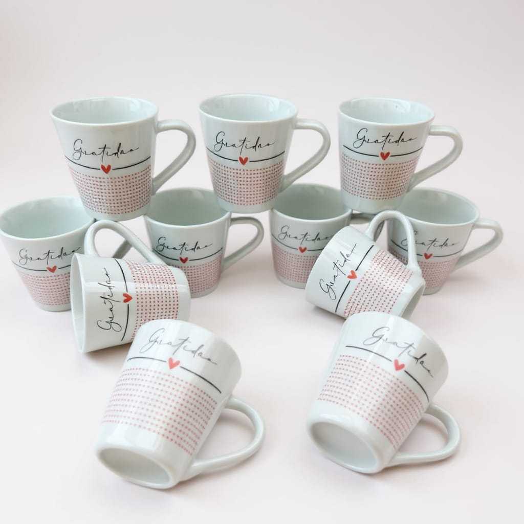 Jogo Caneca Porcelana Gratidao Xícara Café Chá Personalizada