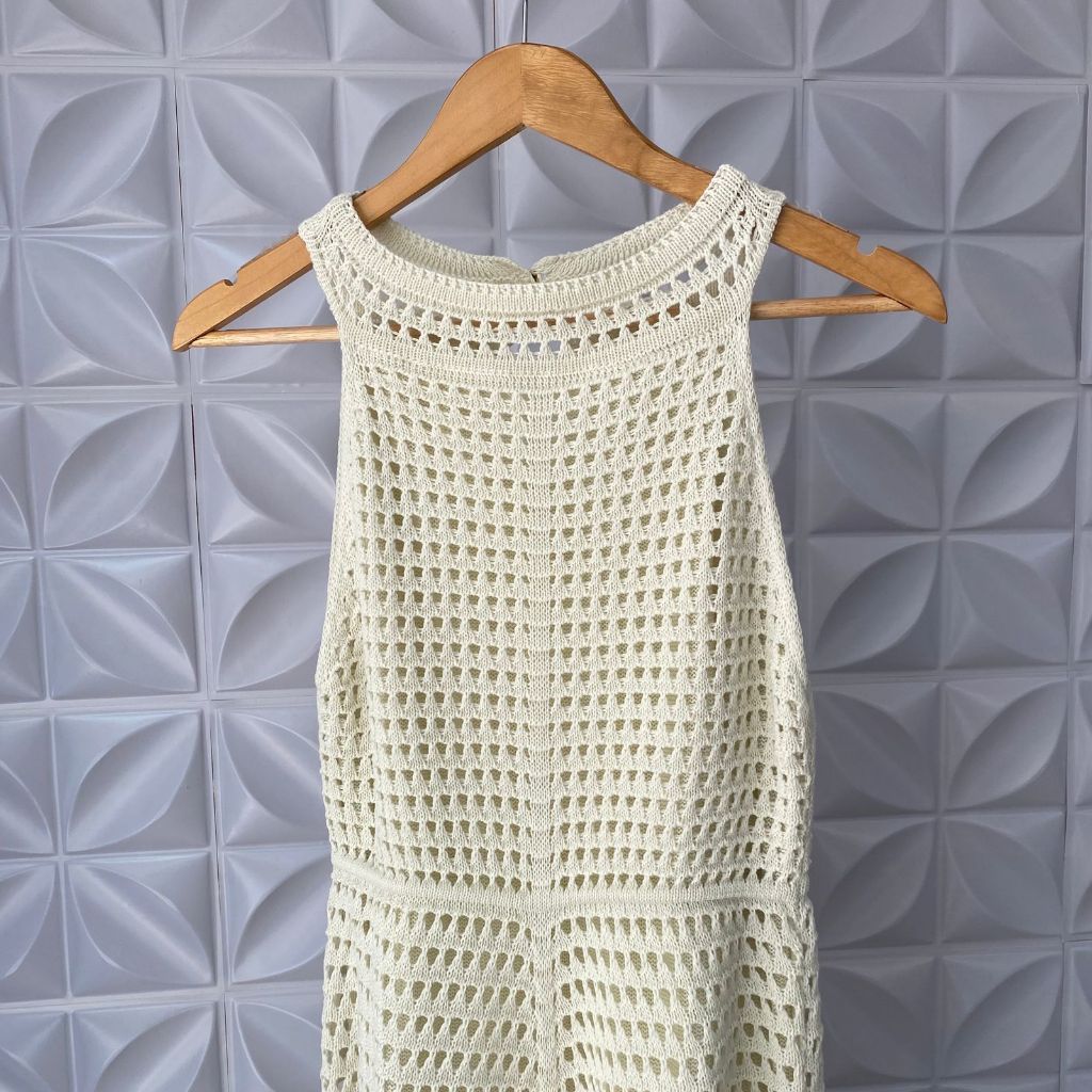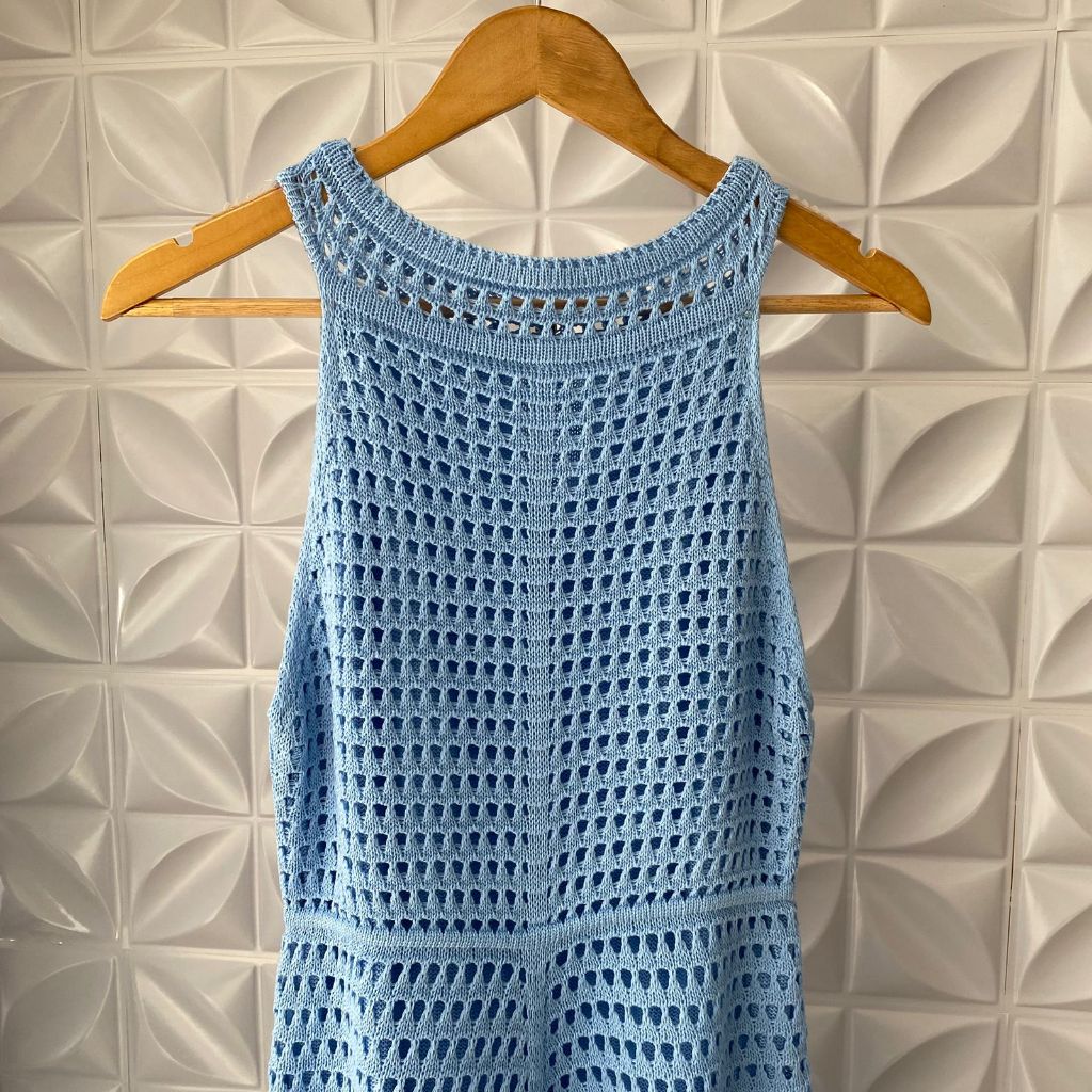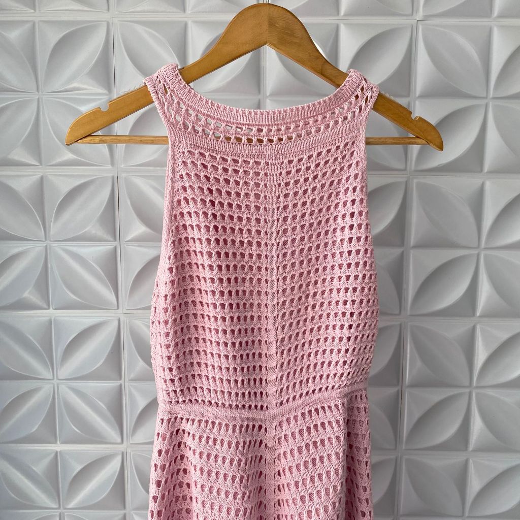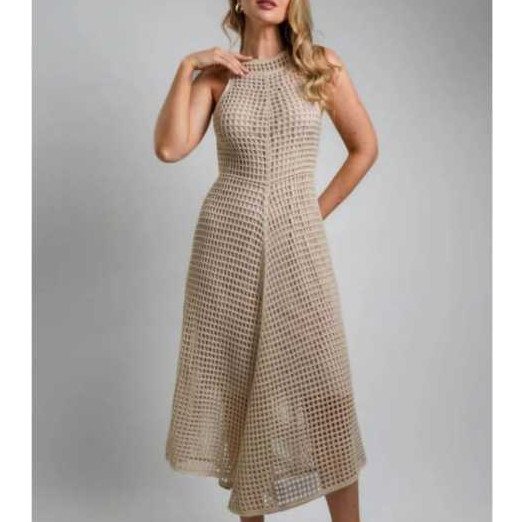 Vestido Feminino Rendado Tricô Estilo Crochê Forrado com Botões Elegante