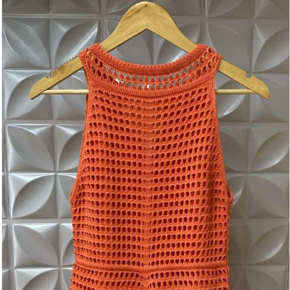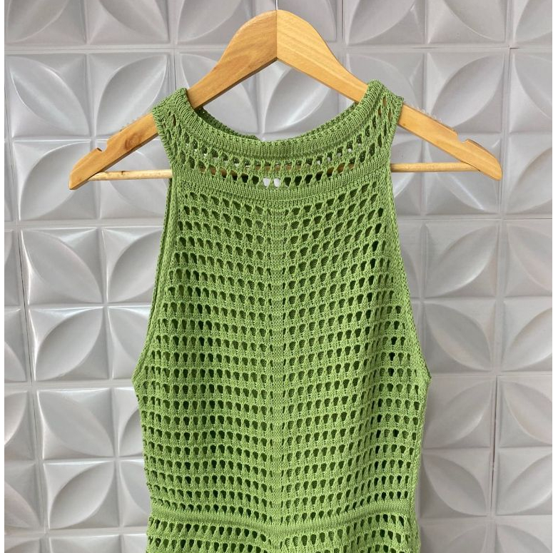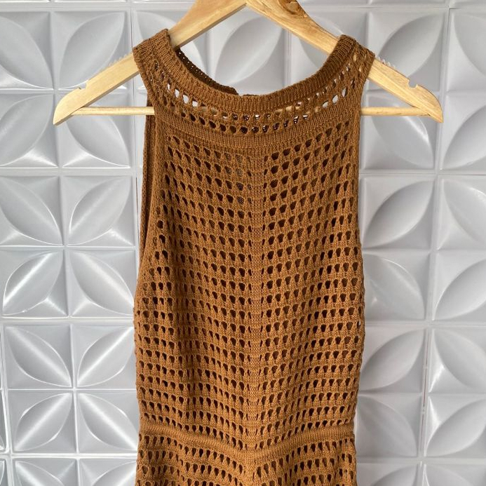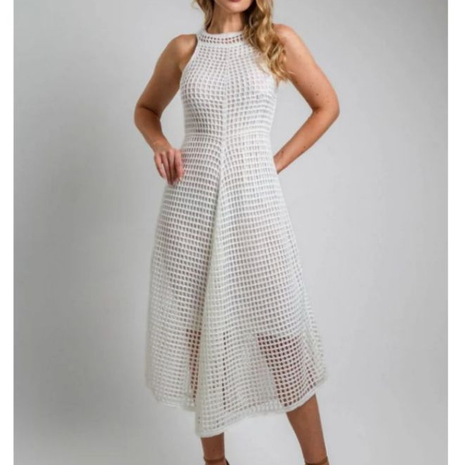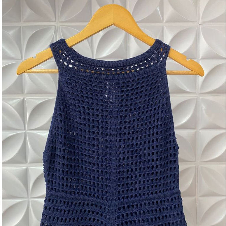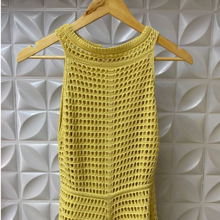 Vestido Feminino Rendado Tricô Estilo Crochê Forrado com Botões Elegante