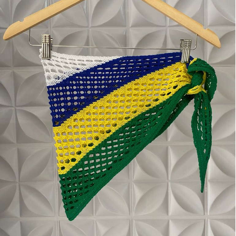 Lenço Bandana Tricô Rendado Estilo Crochê Tendência Verão Copa do Mundo Brasil