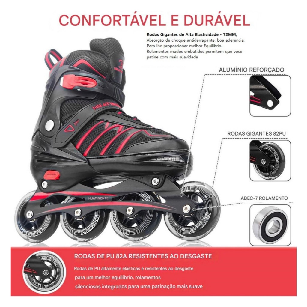 Patins Inline Adulto / Infantil Abec7 Semi Pró Tam 33 até 43