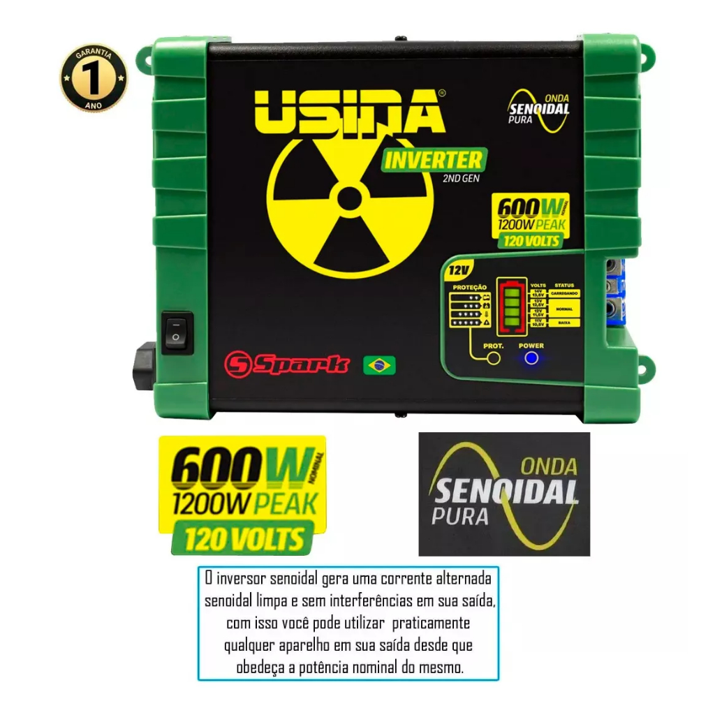Inversor Usina Onda Senoidal Pura 600w 12v 120v 1200w Pico