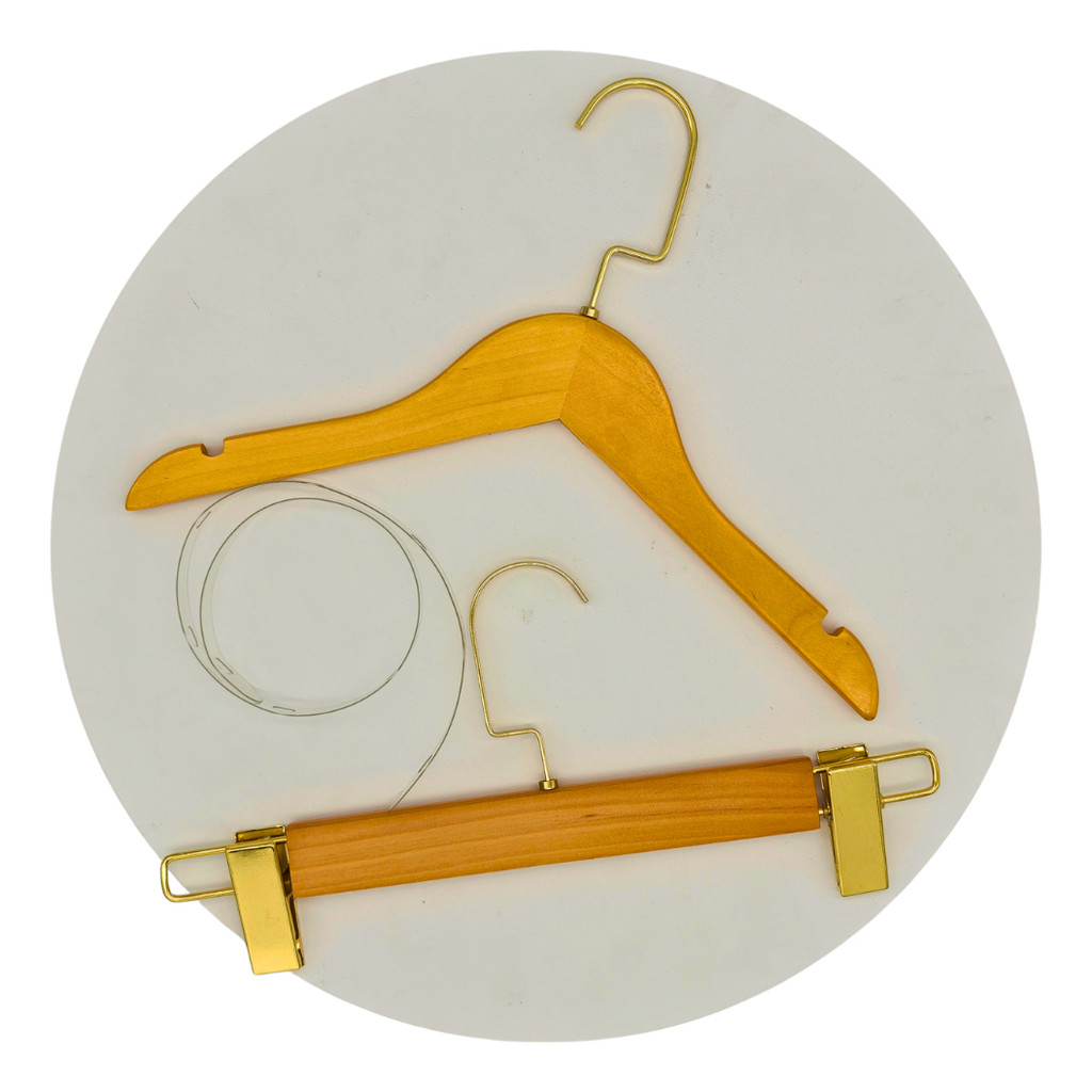 Cabide Madeira Infantil Duplo Extensor C/ F22-1 Luxo Dourado