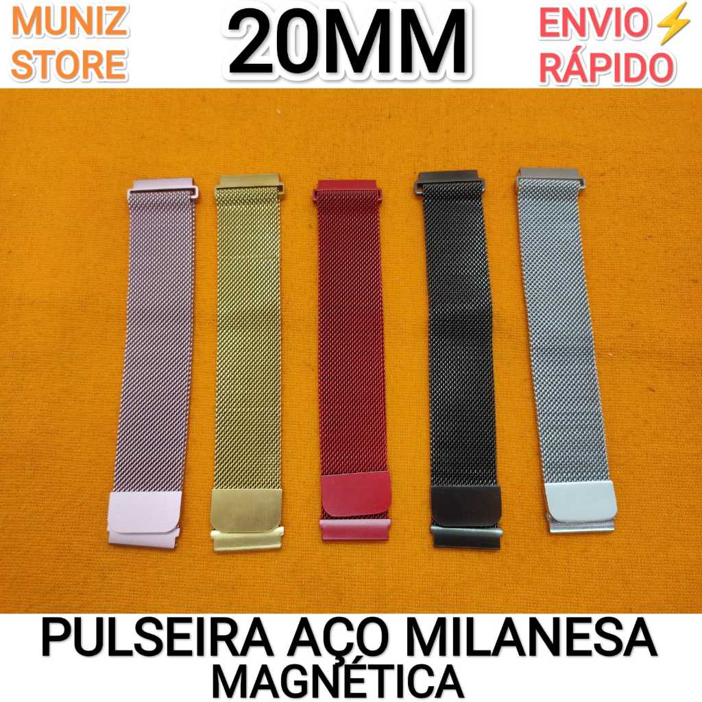 Pulseira 20mm Amazfit Bip, GTS, Haylou Solar, GST, RS4 Plus RT 2, GTR 47mm Correia Milanesa Metal Pulseiras Magnética