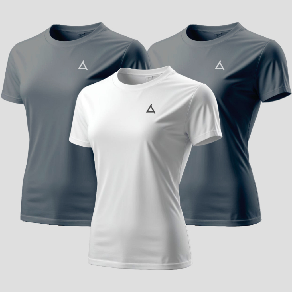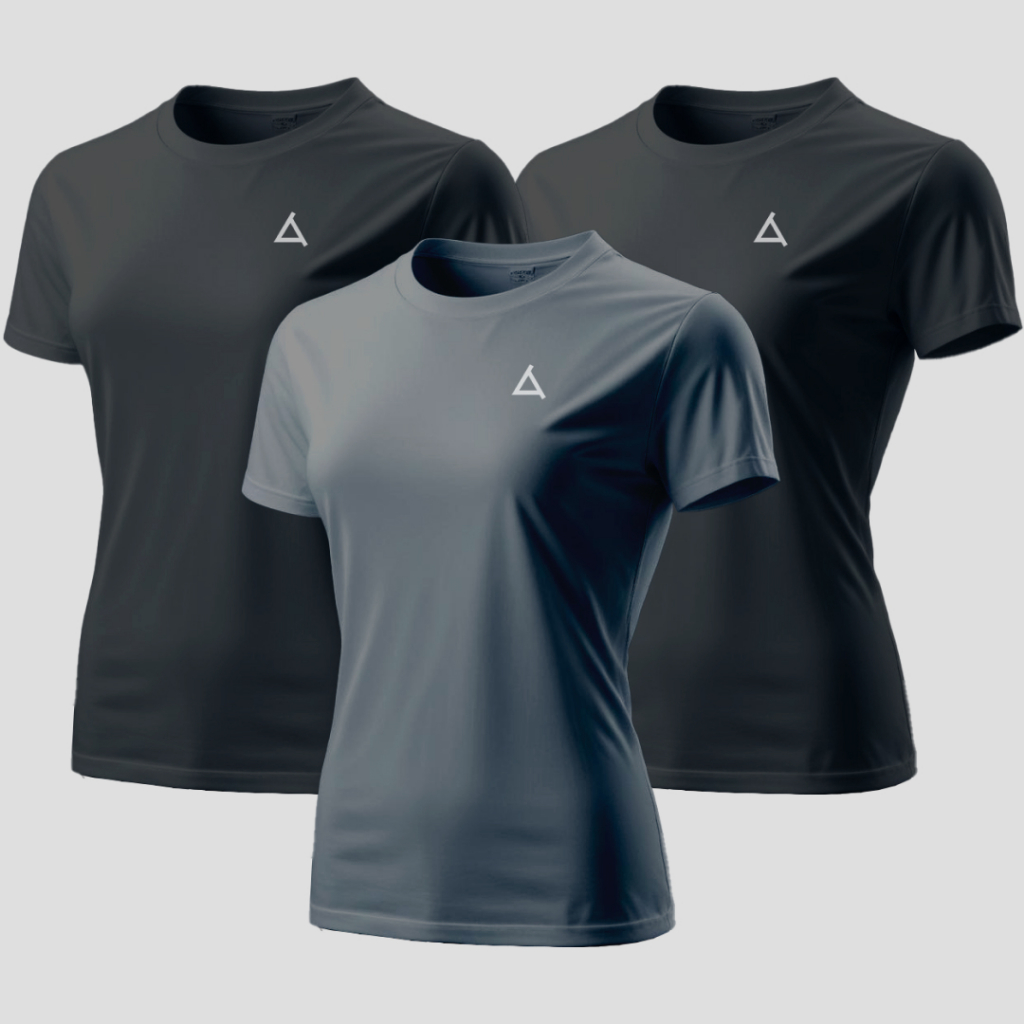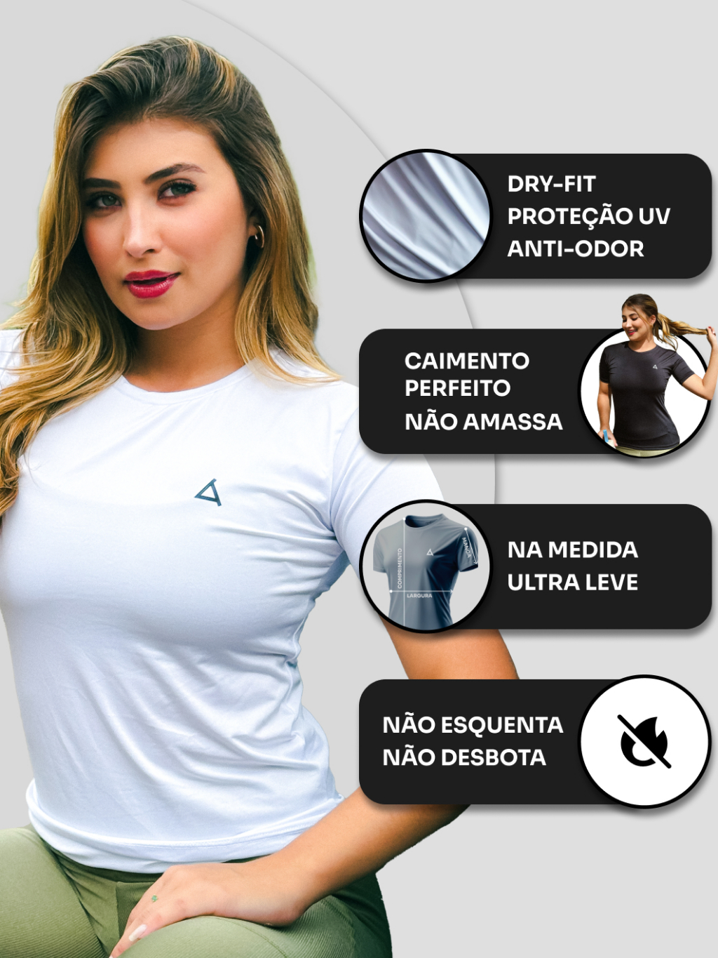 Kit 3 Blusas Feminina Dry Fit Camiseta Academia Manga Curta Proteção UV 50% Camisa Fitness