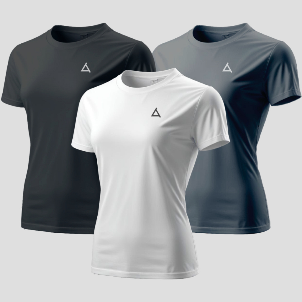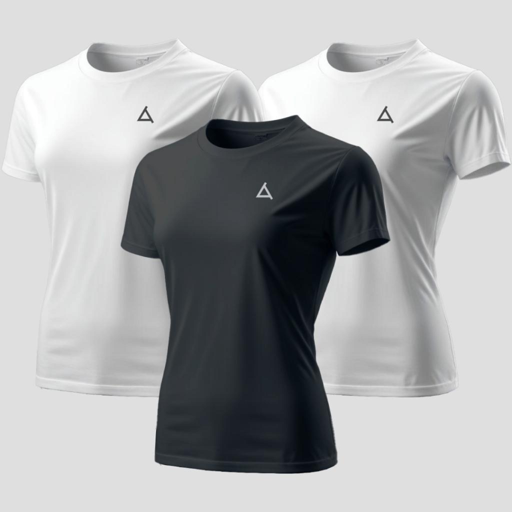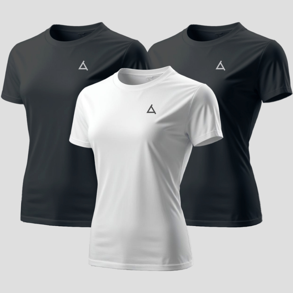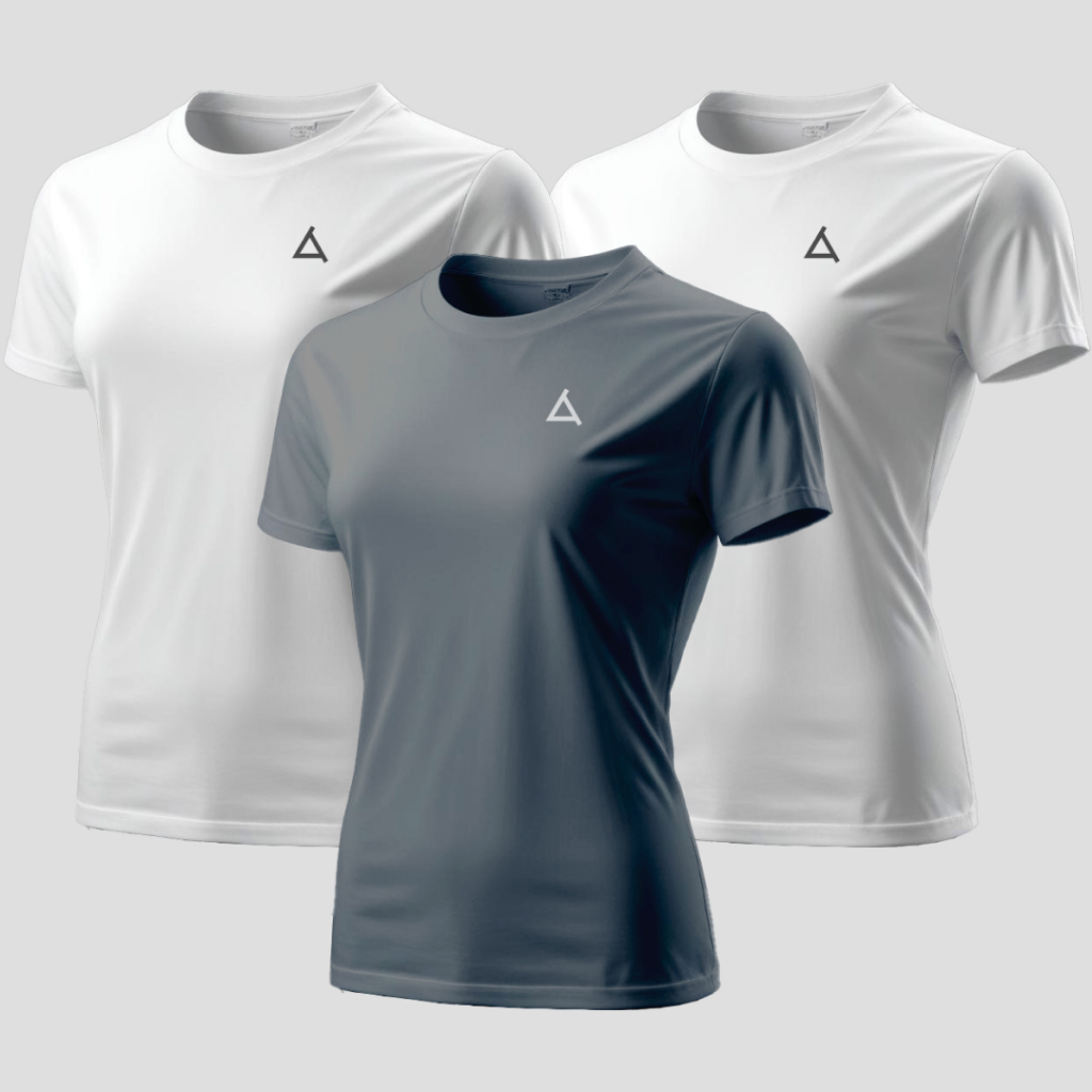 Kit 3 Blusas Feminina Dry Fit Camiseta Academia Manga Curta Proteção UV 50% Camisa Fitness