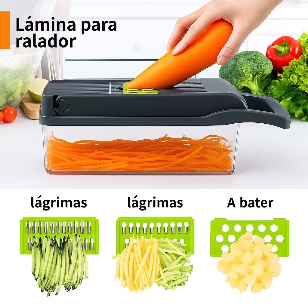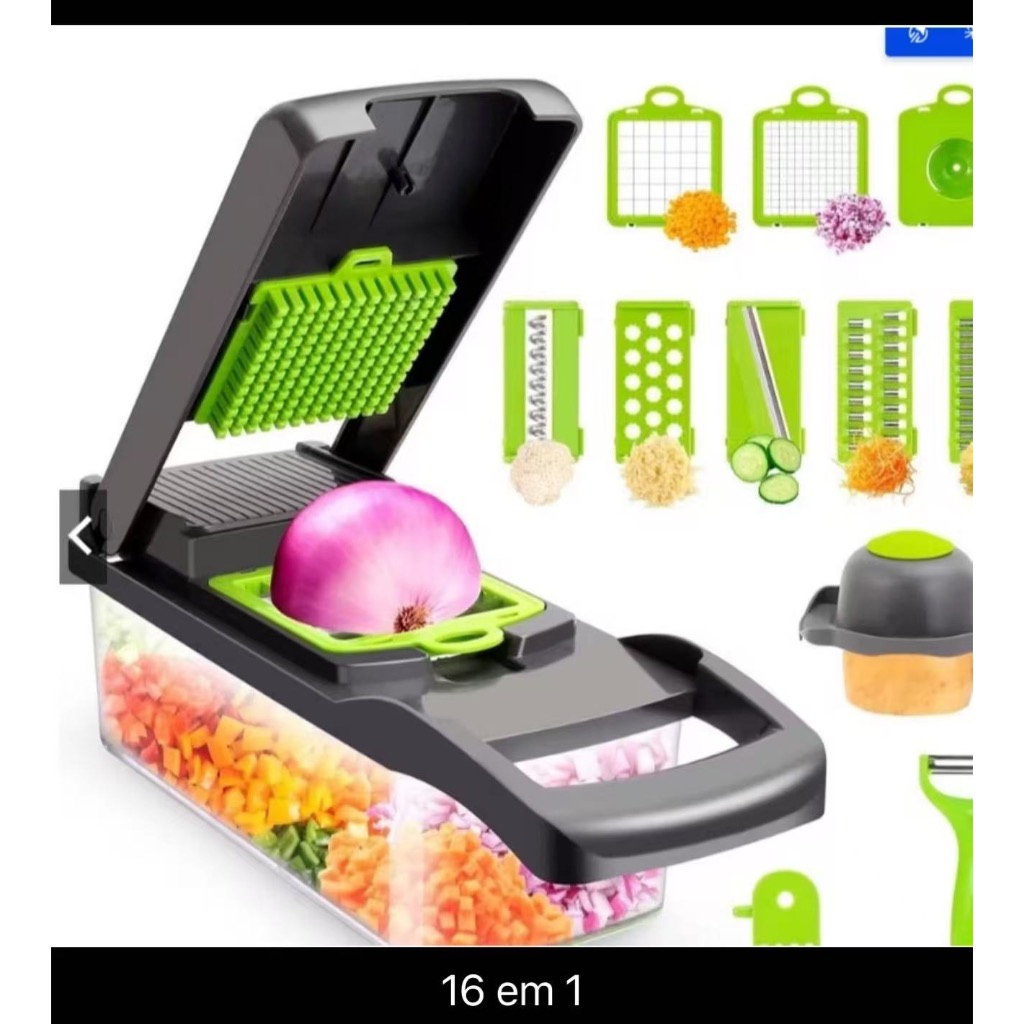Fatiador de Legumes 16 em 1 Cortador Ralador Picador Multifuncional Cozinha com Lâminas Inox