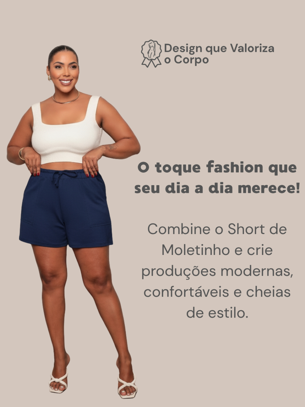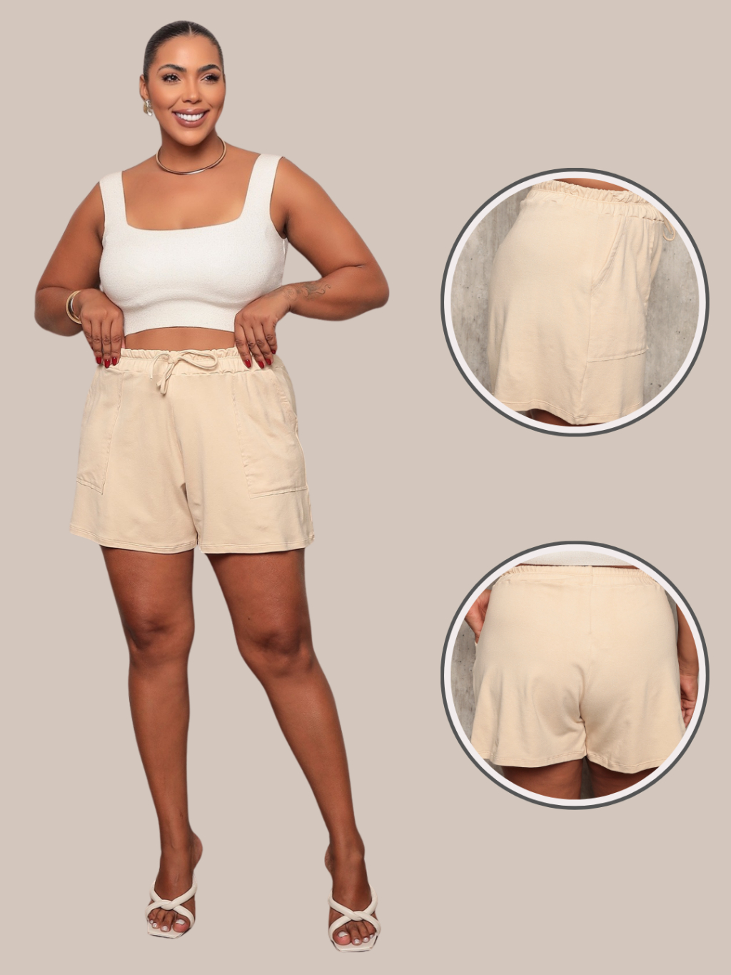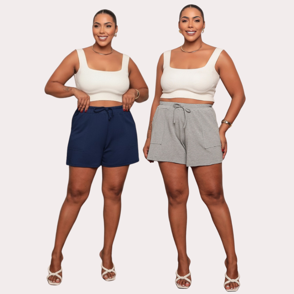 Kit 2 Short Feminino Moletinho Bermuda Plus Size Godê Bolso Frontal Confortavel Soltinho