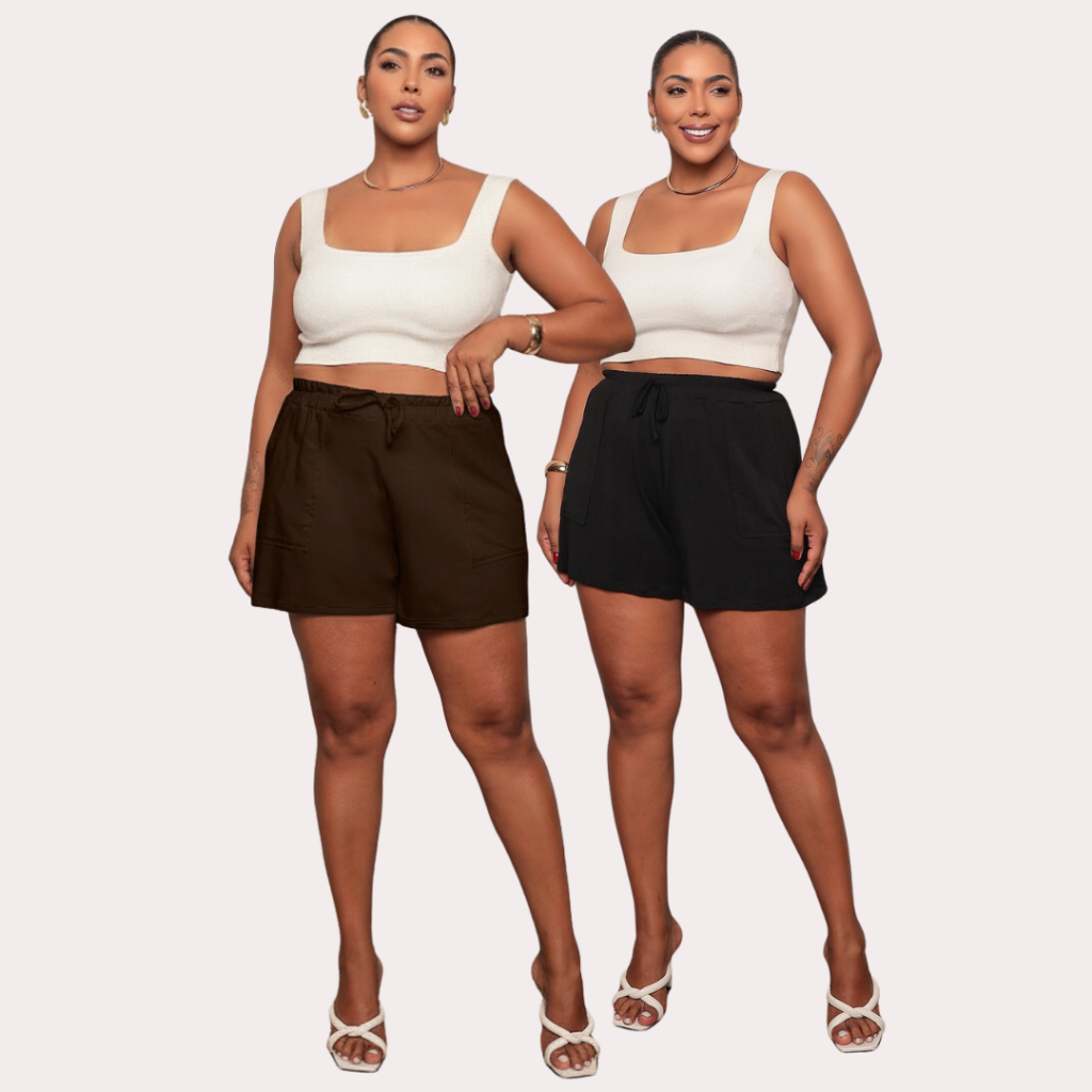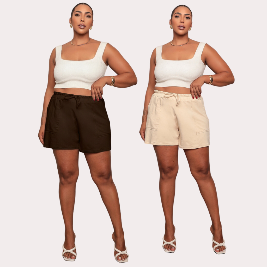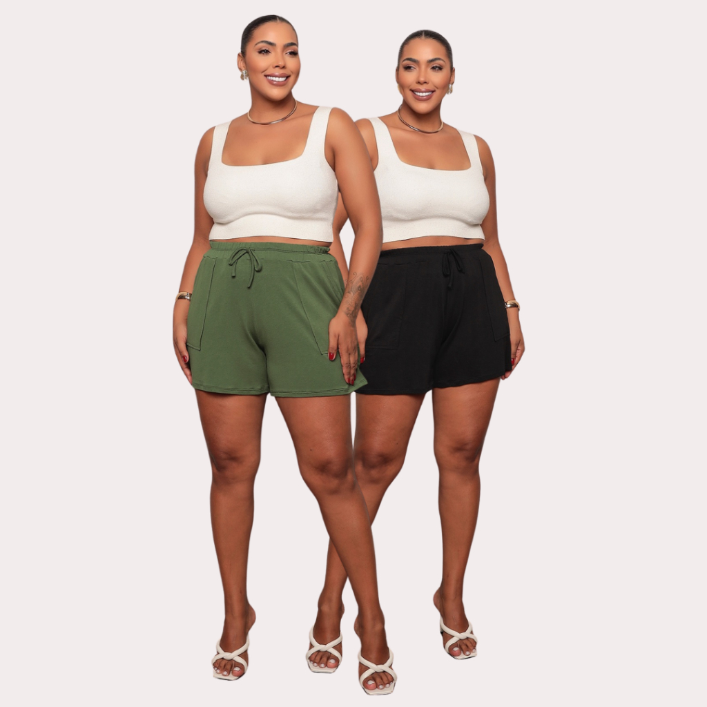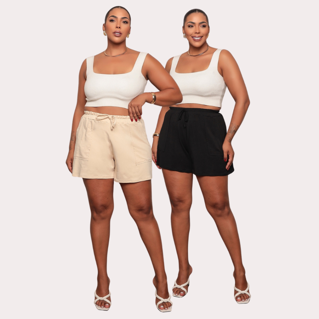 Kit 2 Short Feminino Moletinho Bermuda Plus Size Godê Bolso Frontal Confortavel Soltinho