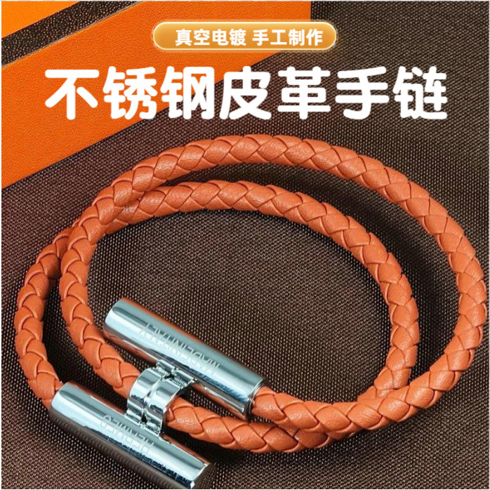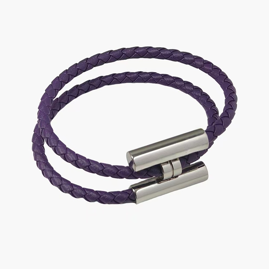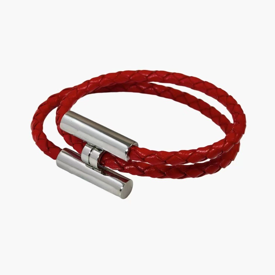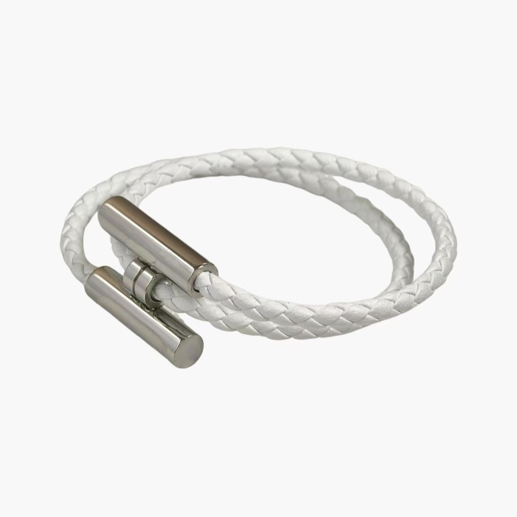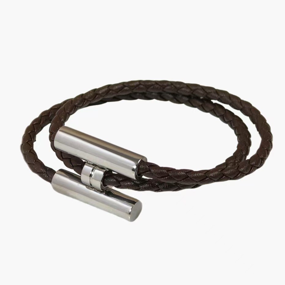 Casal pulseira feminina moda couro trançado pulseira simples All-Match masculino alça de mão pulseira masculina prata