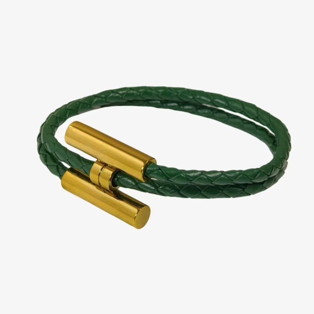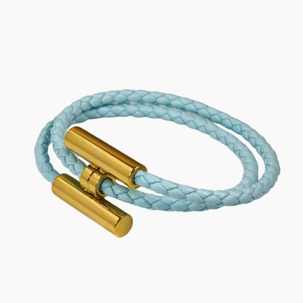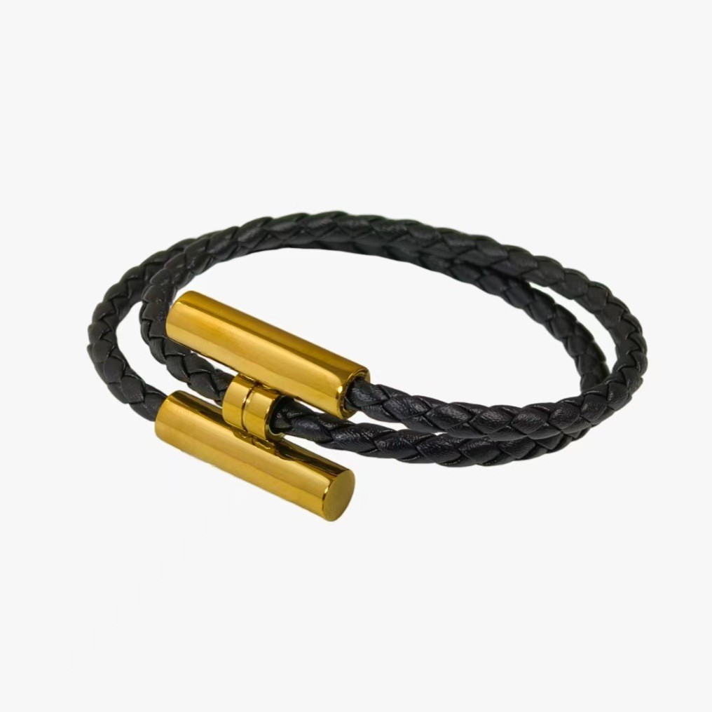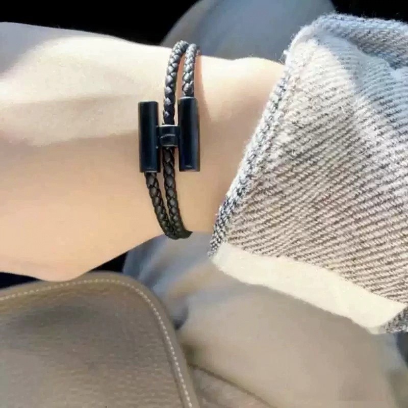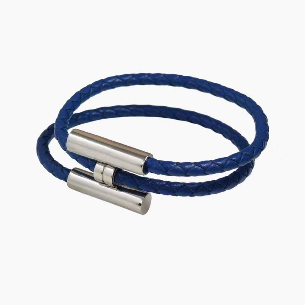 Casal pulseira feminina moda couro trançado pulseira simples All-Match masculino alça de mão pulseira masculina prata