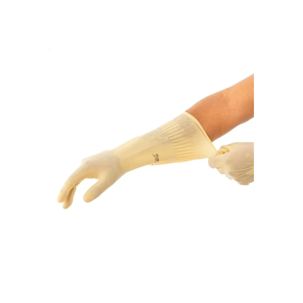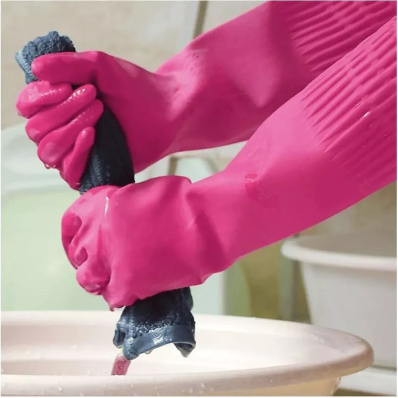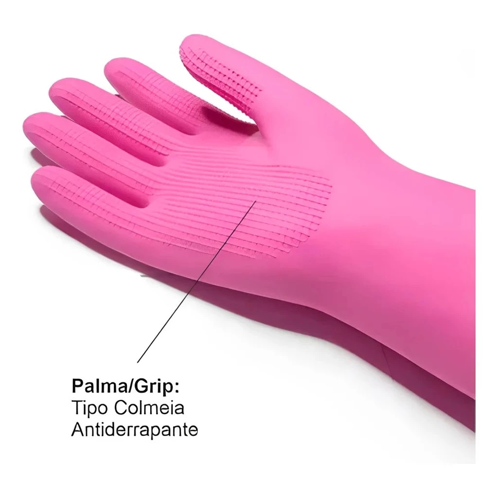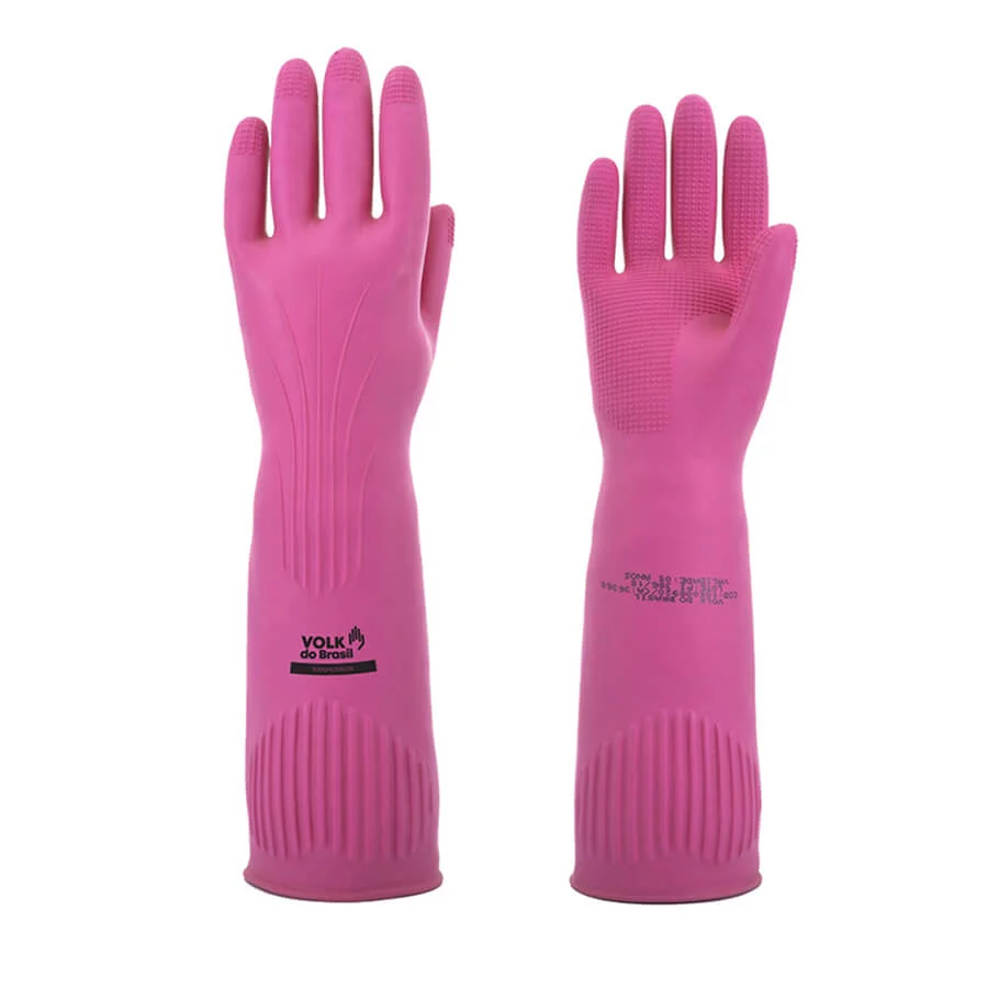Luva de Látex Longa Ranhurada Segurança Proteção Limpeza Pesada Amarela e Rosa